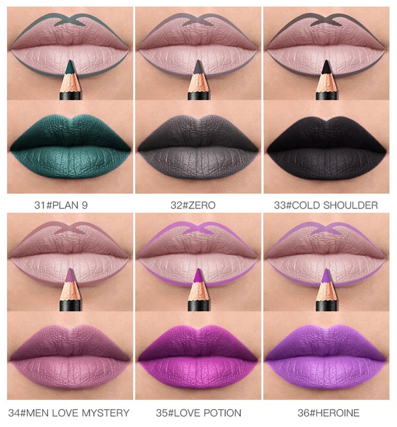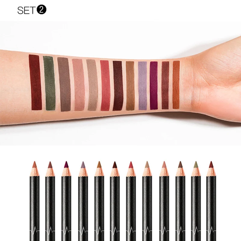 Набор матовых подводков для губ, 12 шт., Стойкий матовый гладкий карандаш для контура губ, Lipline Косметическая ручка, многофункциональный макияж