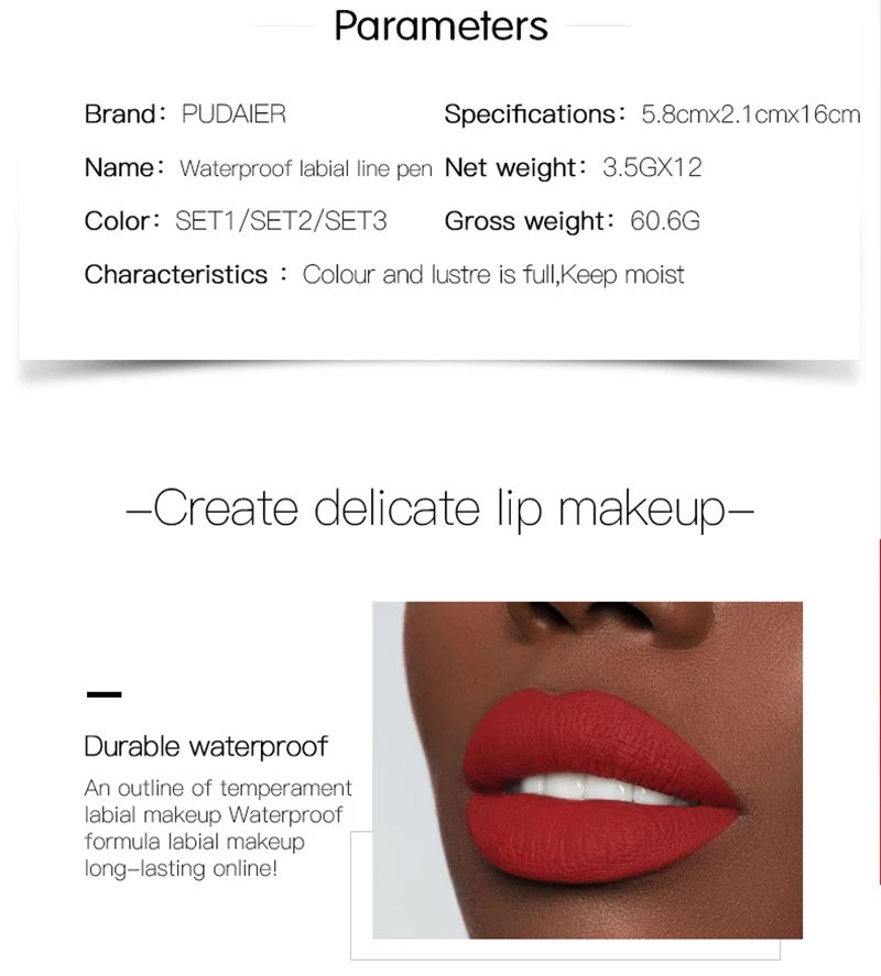 Набор матовых карандашей Pudaier для губ, 12 цветовкомплект, идеаль...