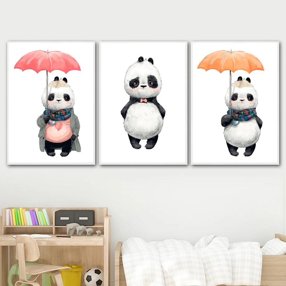 Милая панда шарф воздушный шар Зонт велосипед настенная Картина на холсте скандинавские постеры и принты искусство детской комнаты декор