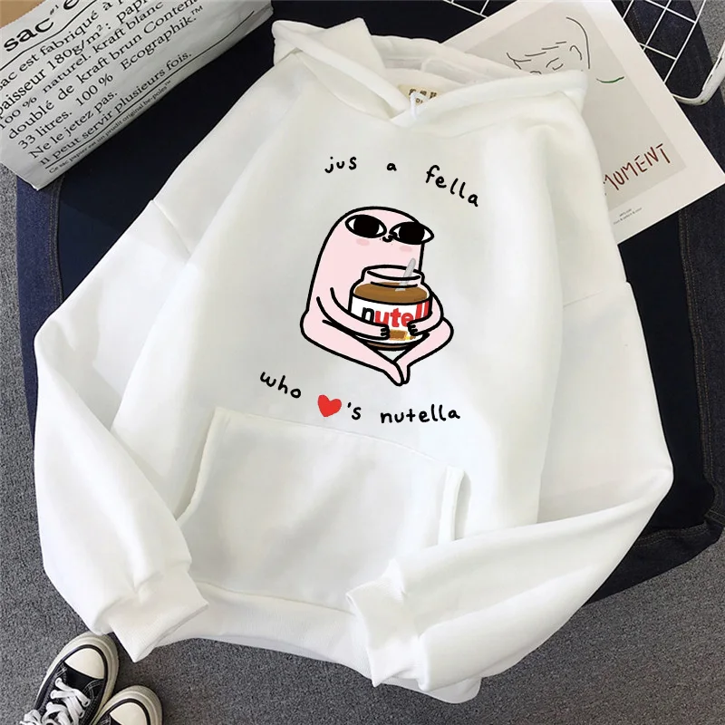 Зимний Женский свитшот 2022, модный дизайн, худи с принтом Nutella Jam, милый Свободный пуловер в стиле хип-хоп, свитшот с рисунком из аниме