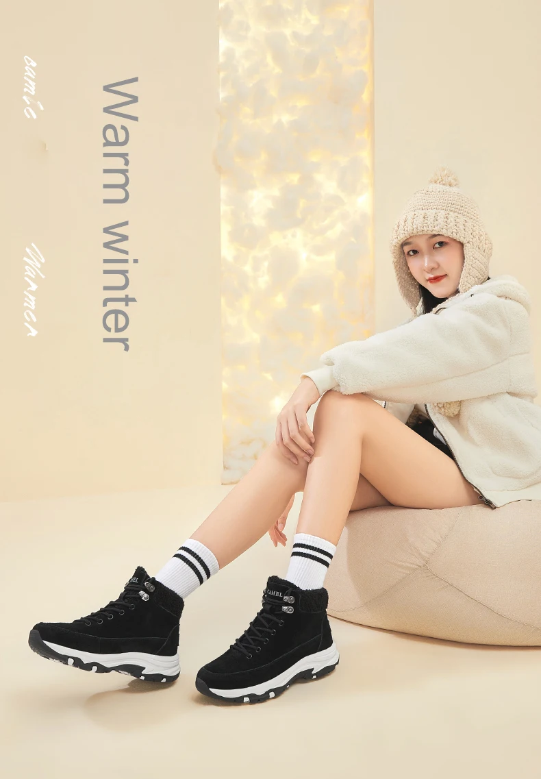 Женская обувь CAMEL, новинка 2021, зимние модные высокие женские сапоги из хлопка, теплая Нескользящая износостойкая обувь для треккинга