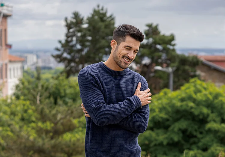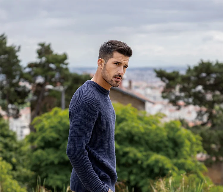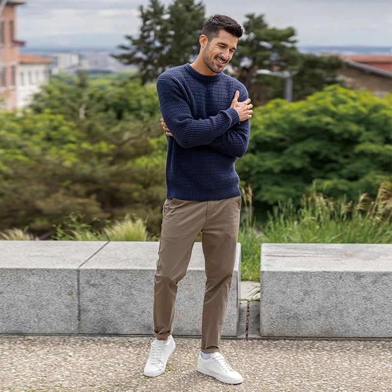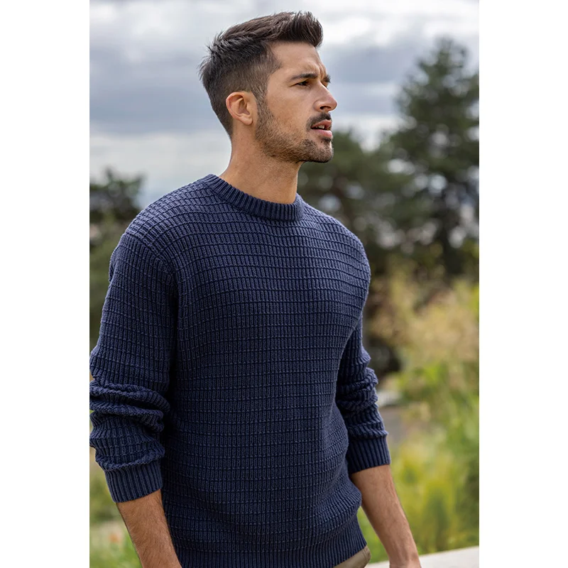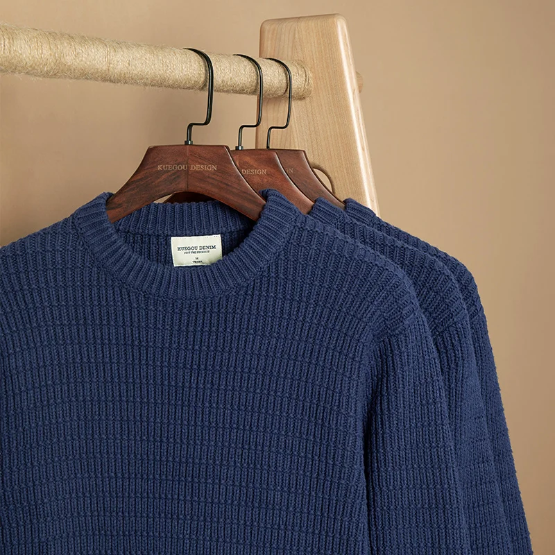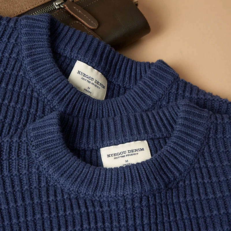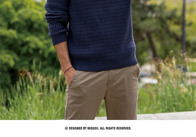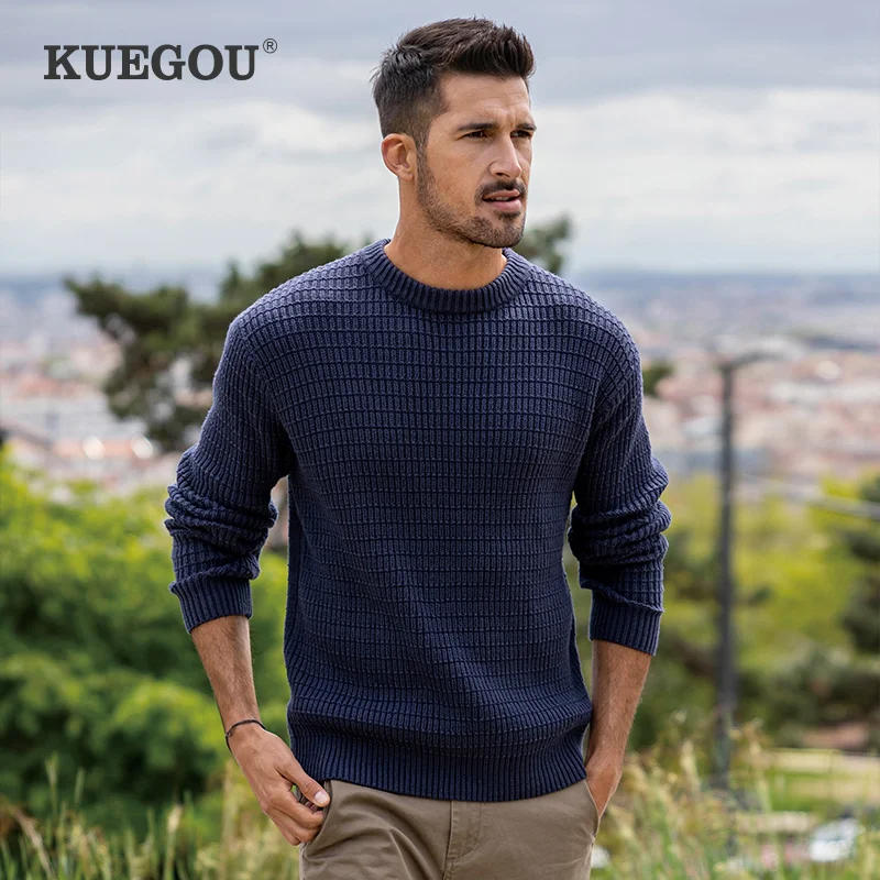 Мужской трикотажный свитер с вышивкой KUEGOU, черный трикотажный св...
