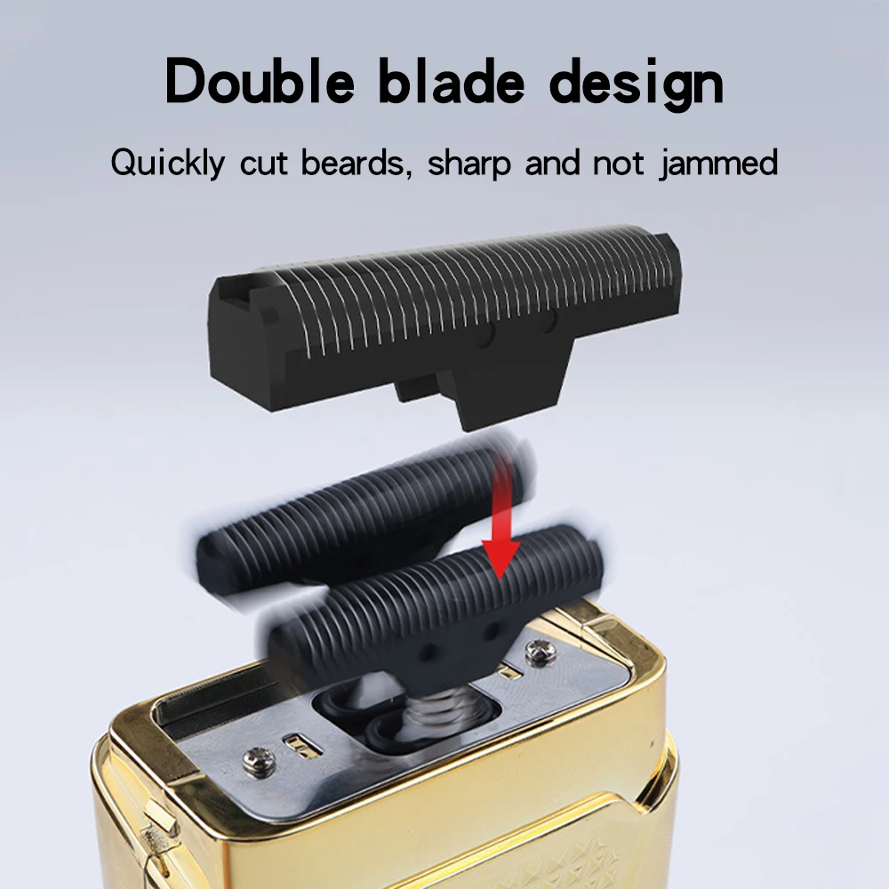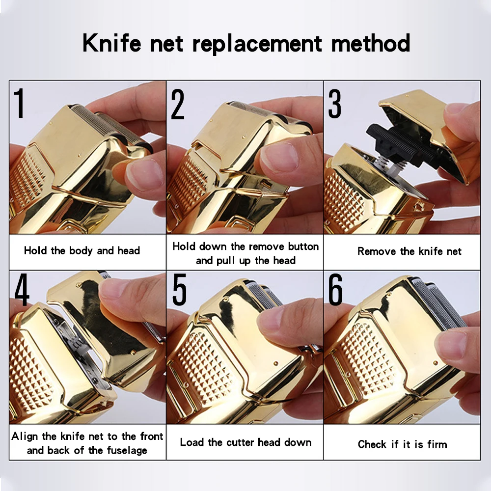 1. Пробивка и вставка двойного назначения, вы можете побрить голову и бороду2. Классический возвратно-поступательный дизайн с двойным ножом с позолоченной сеткой, круглый нож из нержавеющей стали, гладкое лезвие, без остатка после бритья3. Usb-зарядка, подходит для многих областей, ноутбуков, компьютерных портов, может быть универсальной4. Гальванический внешний вид, стильный корпус