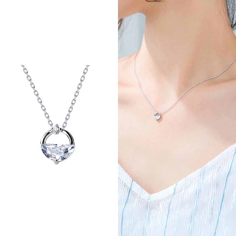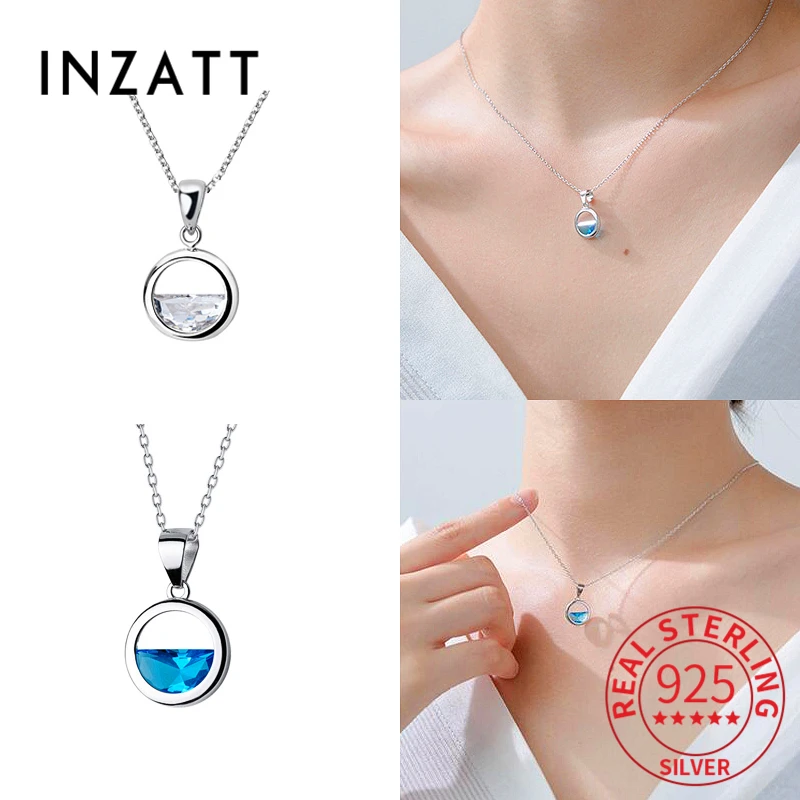 Ожерелье INZATT из настоящего серебра 925 пробы с круглым кулоном из циркония для очаровательных женщин, милое минималистичное милое ювелирное изделие для вечевечерние, аксессуары
