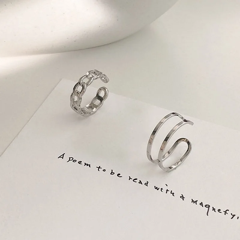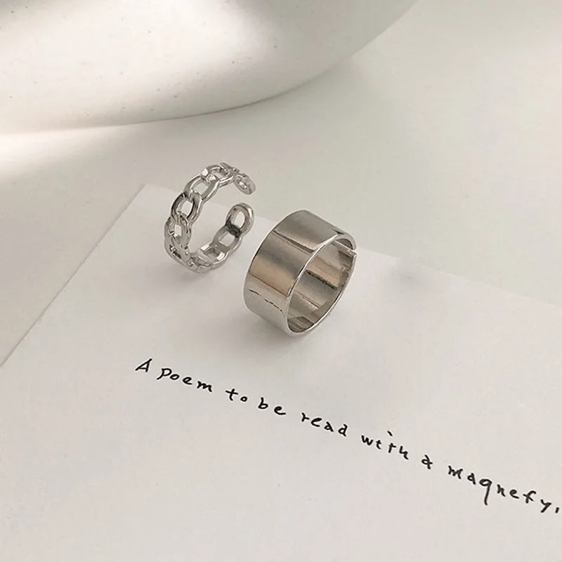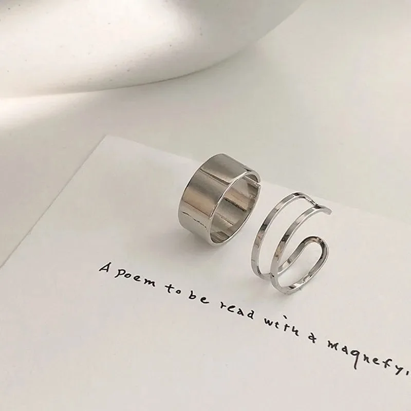 Набор женских простых колец серебристого цвета, в Корейском стиле