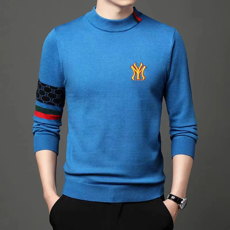Роскошный дизайнерский высококачественный брендовый вязаный свитер с вышивкой Мужская теплая Повседневная модная мужская одежда с круглым вырезом на осень и зиму