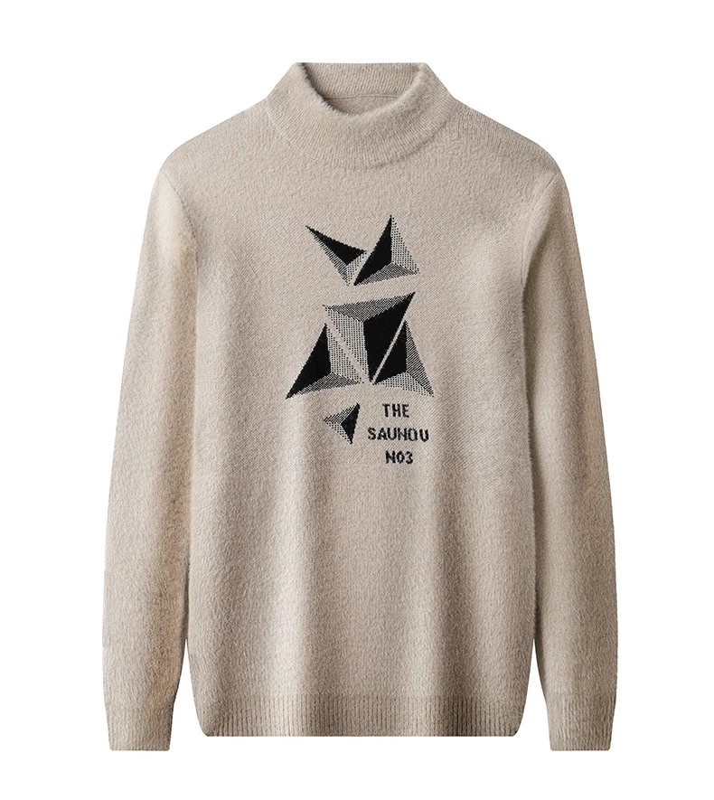 Мужской шерстяной свитер с геометрическим принтом, Теплый Мягкий тр...