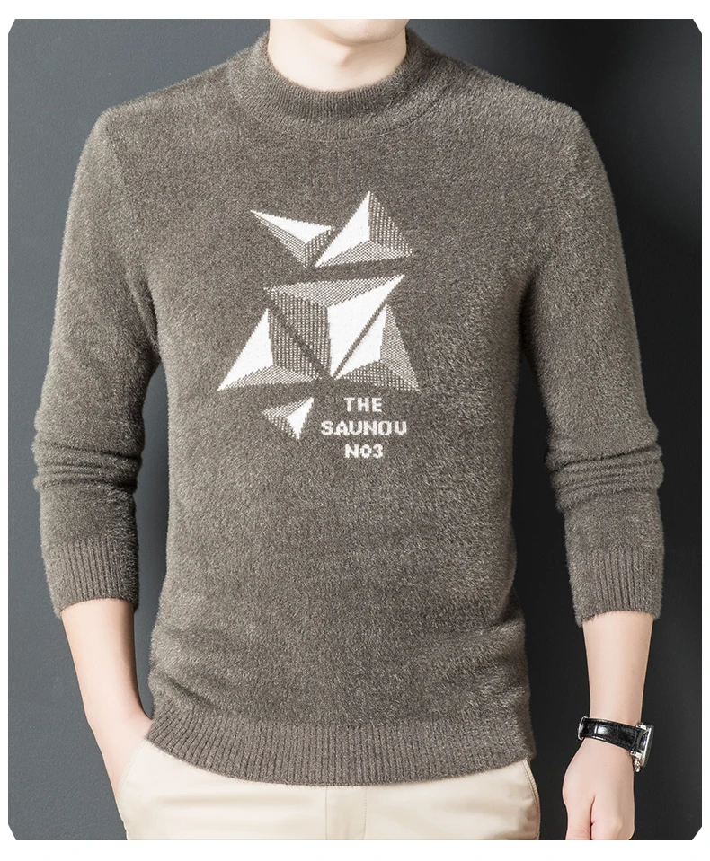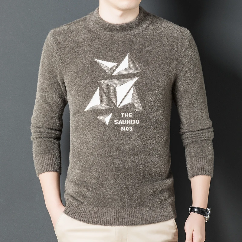 Мужской Мягкий трикотажный пуловер, повседневный приталенный теплый...