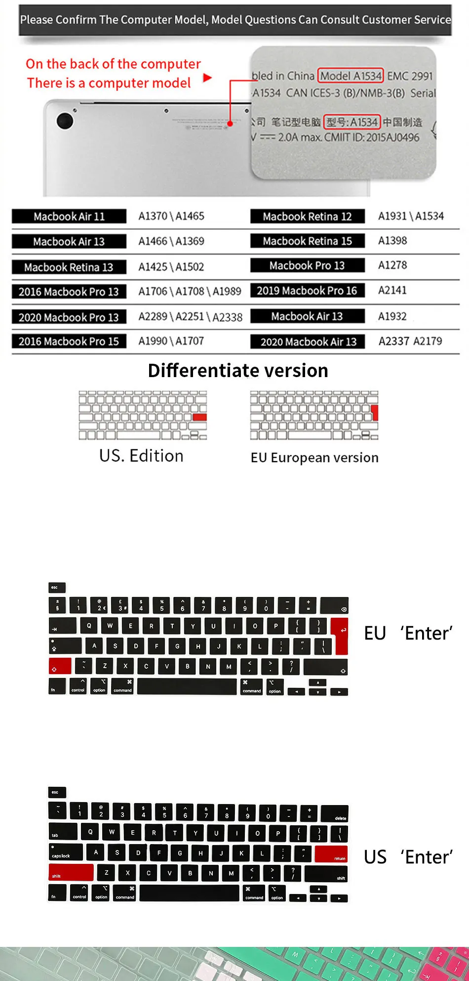 Силиконовый чехол для клавиатуры Apple Macbook Air 13 15 A1466 A1278 A1398, 8 цветов