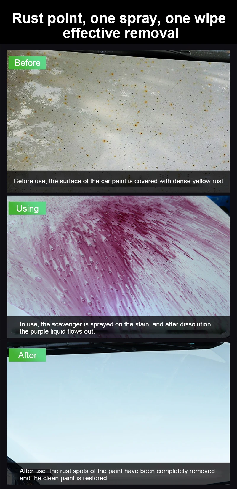 Функция:Легко удаляет железную ржавчину и пыльВосстановите как новый цветБезопасно для колес и краскиПростота в использованииИнформация о продукте:Легко удалите железную ржавчину и пыль. HGKJ железо для удаления ржавчины и пыли может легко удалить тормозную пыль на колесе и пятна ржавчины на краске, которые не могут быть удалены с помощью другого очистителя.Восстановите как новый цвет. Крошечные железные пятна от ржавчины заставят вашу автомобильную краску потерять блеск, а большое количество тормозной пыли заставит колеса выглядеть плохо. Теперь вы можете немедленно восстановить новый цвет краски и колеса с помощью HGKJ Железа Ржавчины и удаления пыли.Безопасно для колес и краски. Не пытайтесь использовать сильные кислотные Щелочные Химические вещества для удаления упрямой железной пыли и ржавчины, пожалуйста, не стесняйтесь использовать этот продукт, который не повредит вашу автомобильную краску и колеса.Прост в использовании. Распылите и подождите 3-5 минут, намочите краску пистолетом высокого давления.Легко удалите железную ржавчину и пыль. HGKJ железо для удаления ржавчины и пыли может легко удалить тормозную пыль на колесе и пятна ржавчины на краске, которые не могут быть удалены с помощью другого очистителя.Восстановите как новый цвет. Крошечные железные пятна от ржавчины заставят вашу автомобильную краску потерять блеск, а большое количество тормозной пыли заставит колеса выглядеть плохо. Теперь вы можете немедленно восстановить новый цвет краски и колеса с помощью HGKJ Железа Ржавчины и удаления пыли.Советы по использованию:1. Хорошо встряхните и распылите на колесо, подождите 3-5 минут.2. Краску с водяным пистолетом высокого давления.