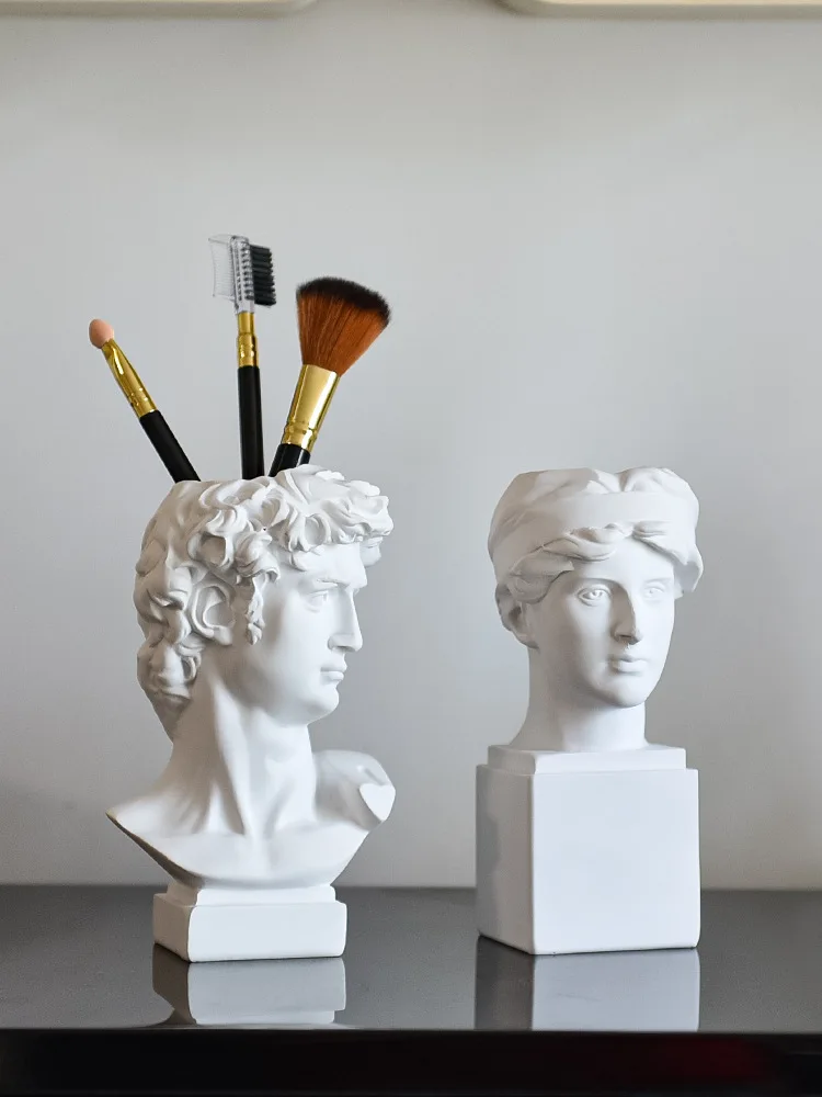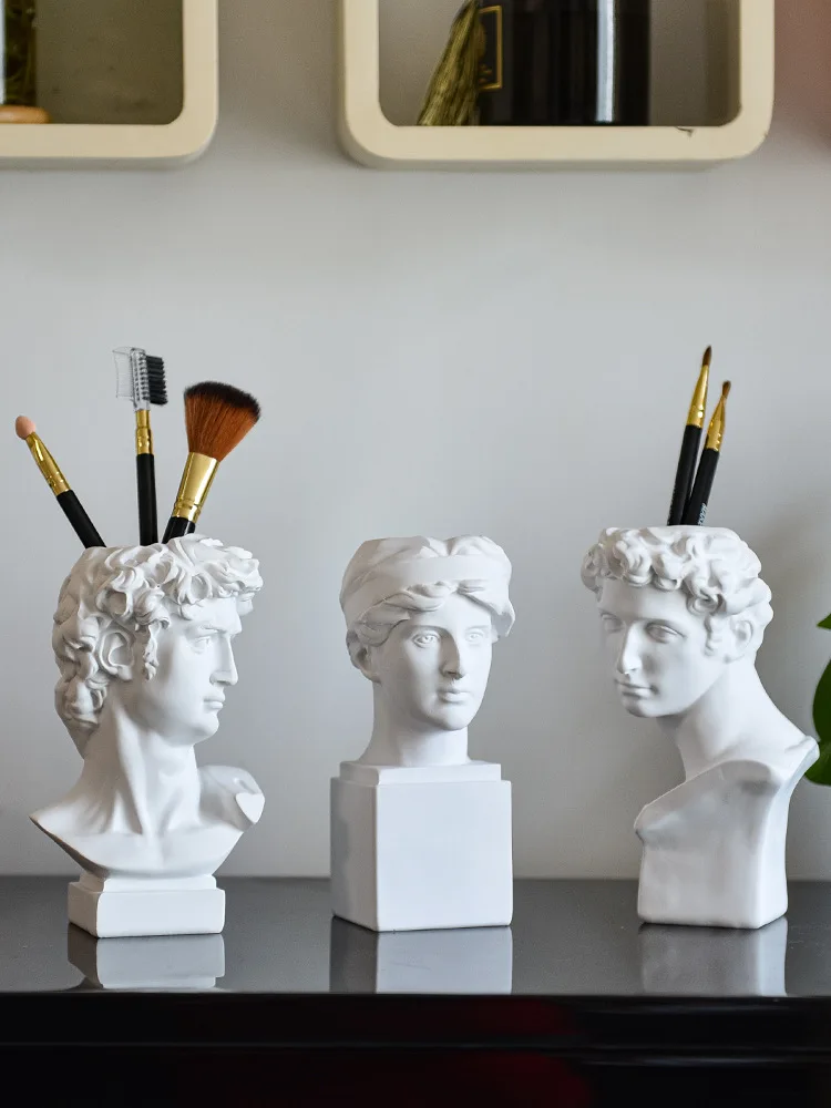 4. Многоцелевой: не только плантатор для лица для выращивания суккулентов/кактусов/крошечных цветов и так далее, но и декоративная фигурка Давида, которая добавляет художественный вкус и теплую атмосферу в ваше живое пространство. Он также может использоваться в качестве настольного органайзера для хранения крошечных предметов, таких как кисти для макияжа, пульты дистанционного управления, ножницы и многое другое.