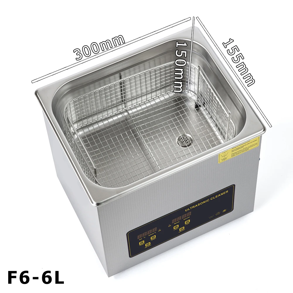F6 Ультразвуковой очиститель 300 Вт 6 л Бытовая цифровая корзина из нержавеющей стали ультразвуковая очистка для зубных протезов часы-очки ювелирные изделия