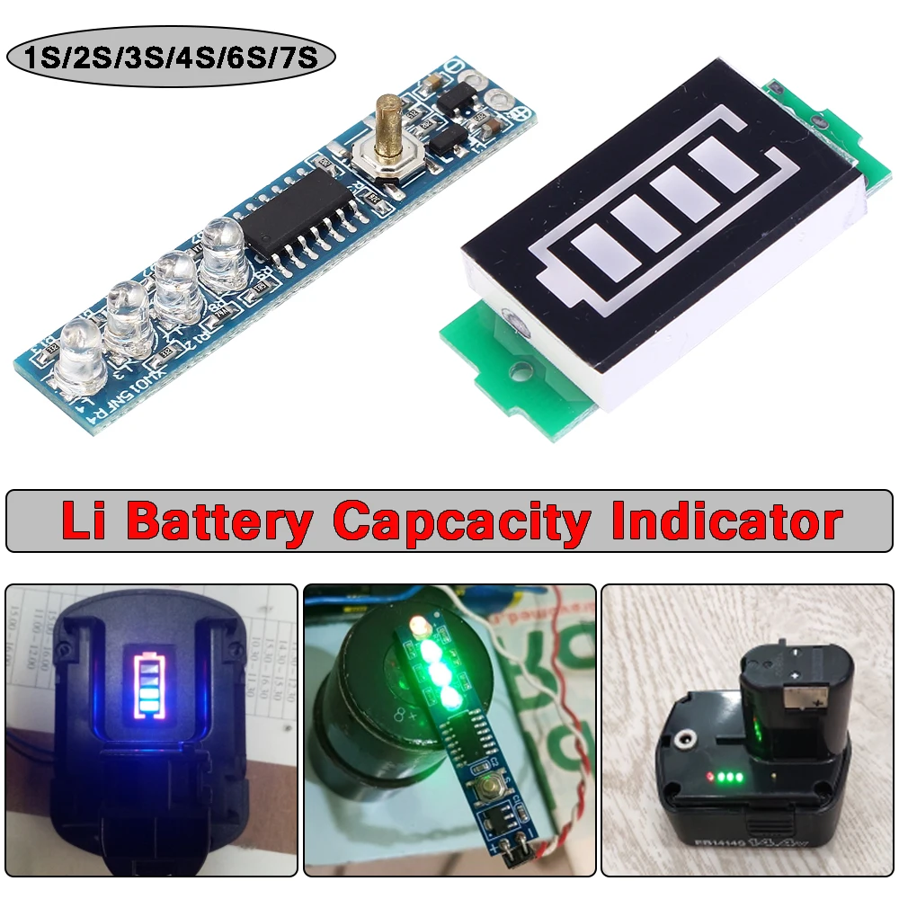 Индикатор емкости литий-ионной батареи 1S 2S 3S 4S 6S 7S, светодиодный дисплей, плата индикатора уровня заряда для литий-ионной батареи 18650