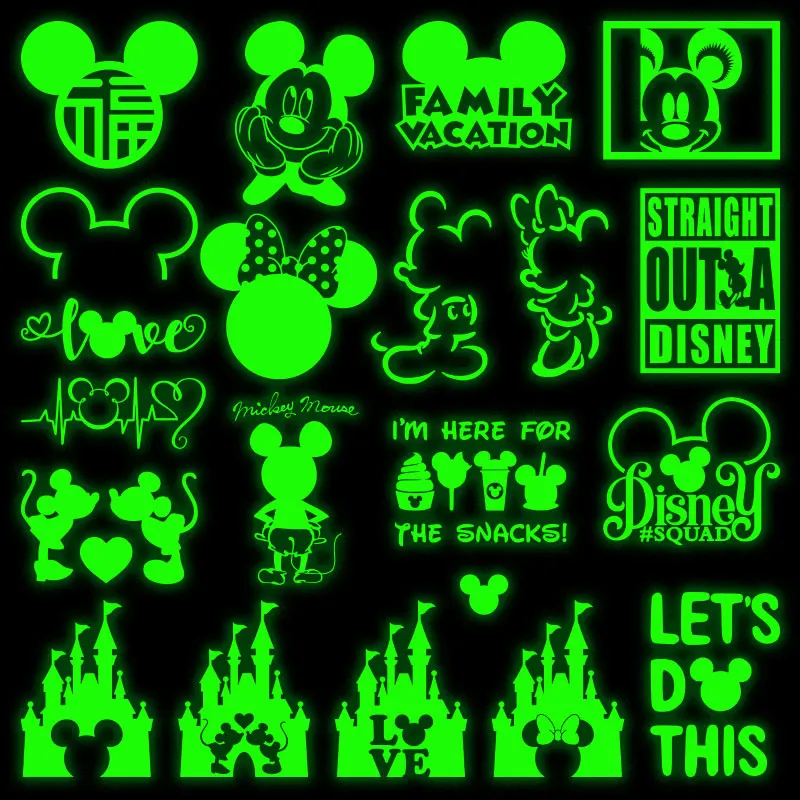 Зеленые светящиеся наклейки Диснея, виниловые наклейки с Микки и Минни для глажки тепла, декоративные термонаклейки из ПВХ, наклейки на ткань