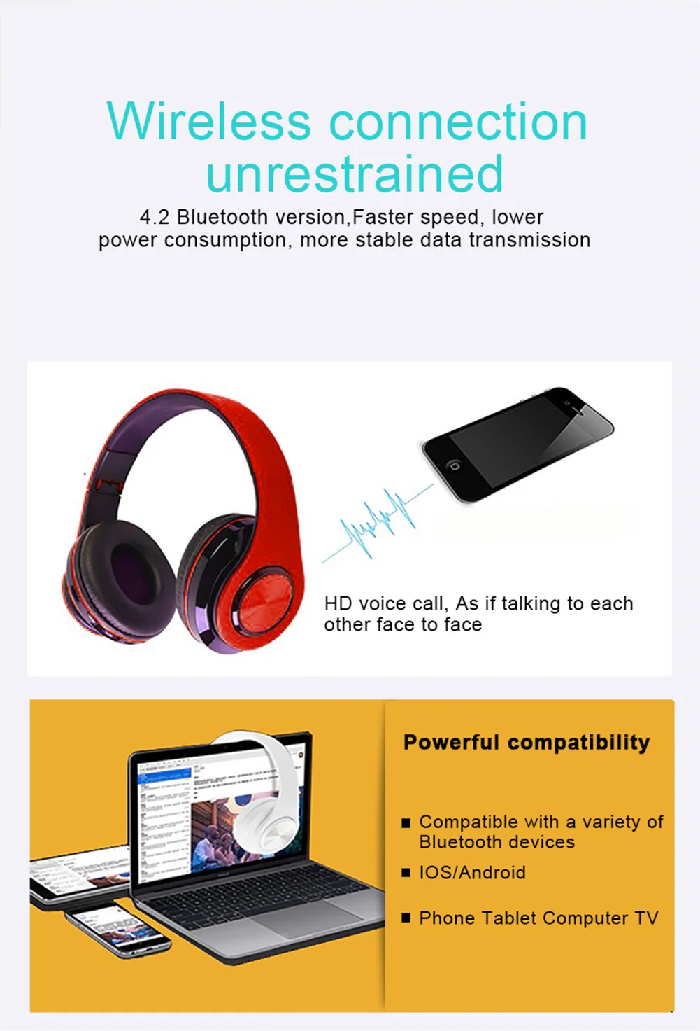 Светящиеся Bluetooth-наушники, складная гарнитура с сабвуфером, Hi-Fi стереонаушники, Беспроводная музыкальная игровая гарнитура с поддержкой SD-карты