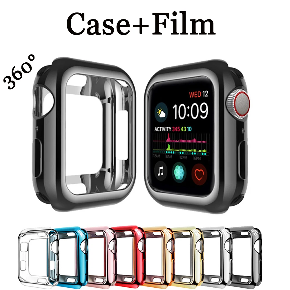 Защитный чехол для Apple Watch 42 мм 38 мм 40 мм 44 мм, ТПУ полноразмерный бампер + пленка для экрана iWatch Series 6 5 4 3 SE, аксессуары