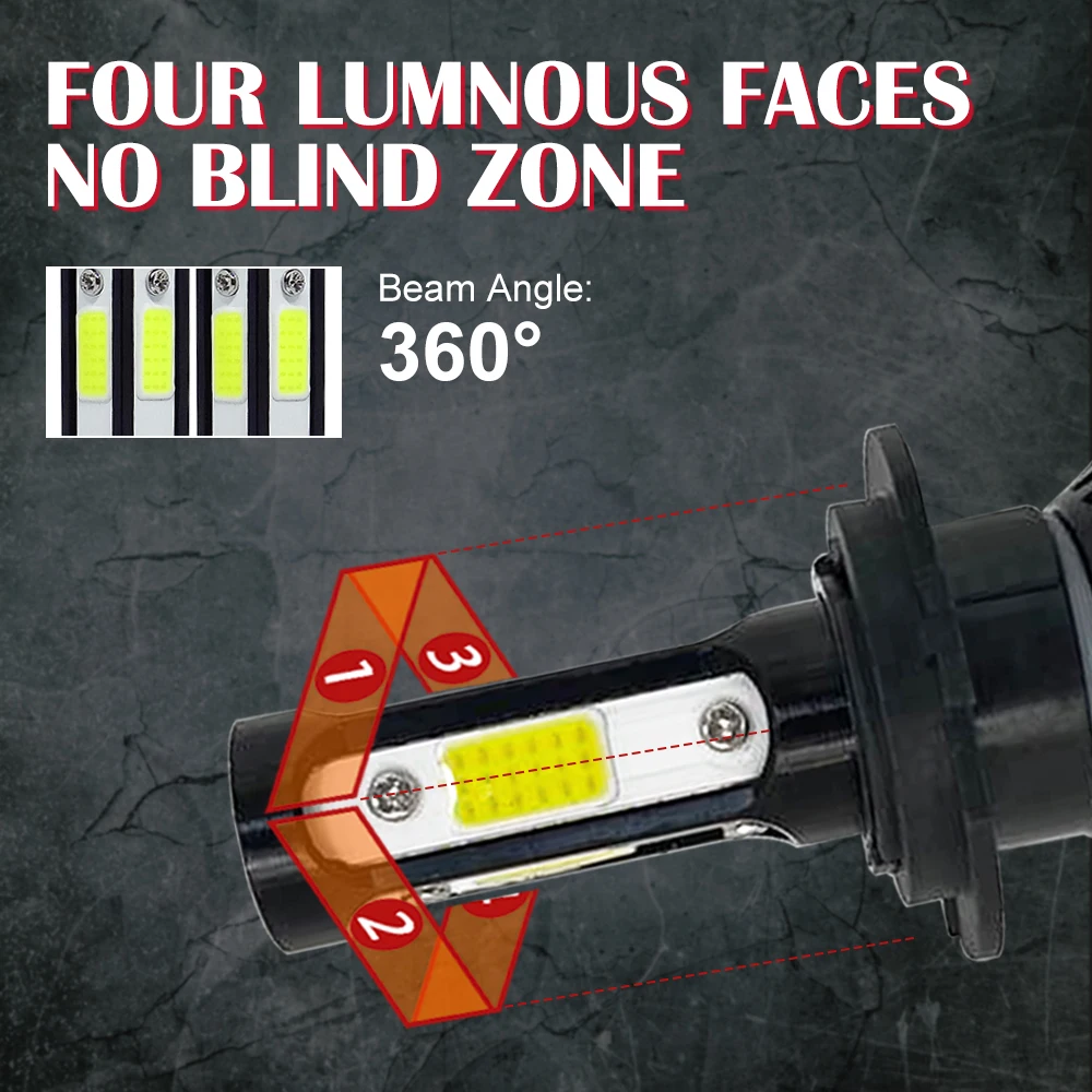 Автомобильная головсветильник Лампа 9005 лм H4 H7 H11 H13 9006 9007 5202 6500, 4-сторонсветодиодный ная головсветильник лампа, автомобильная фара, светильник свет 4300K
