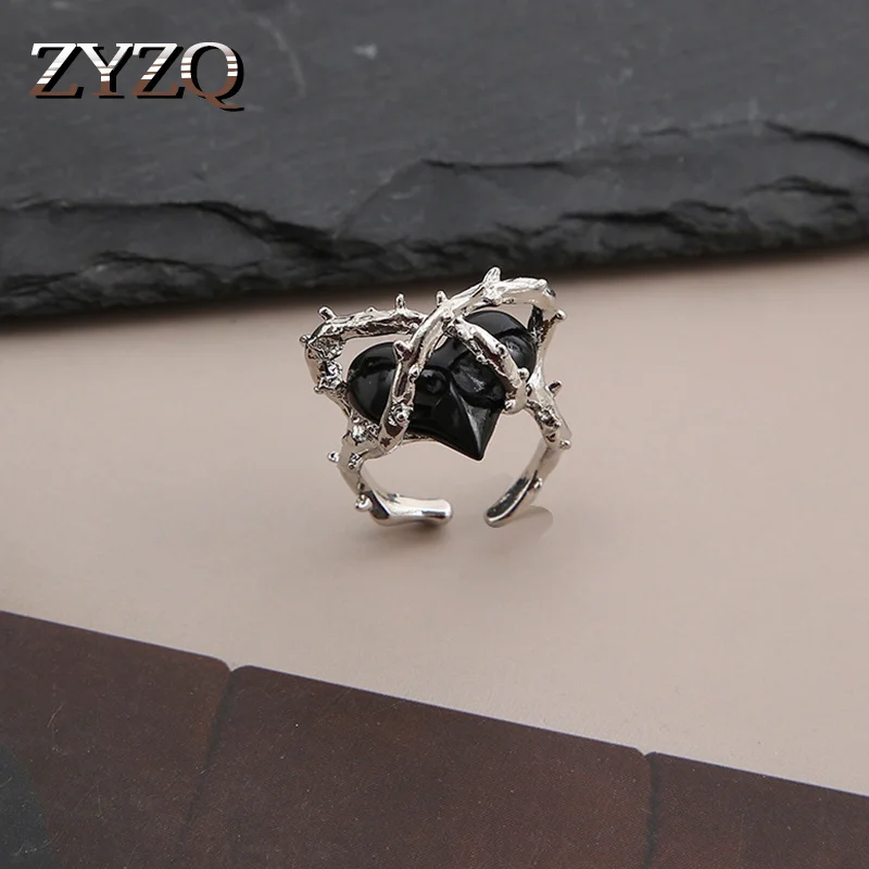 Новинка, Трендовое креативное кольцо ZYZQ в виде темного сердца для женщин, индивидуальное металлическое Открытое кольцо в стиле ретро, модные ювелирные украшения для вечеринок 2021
