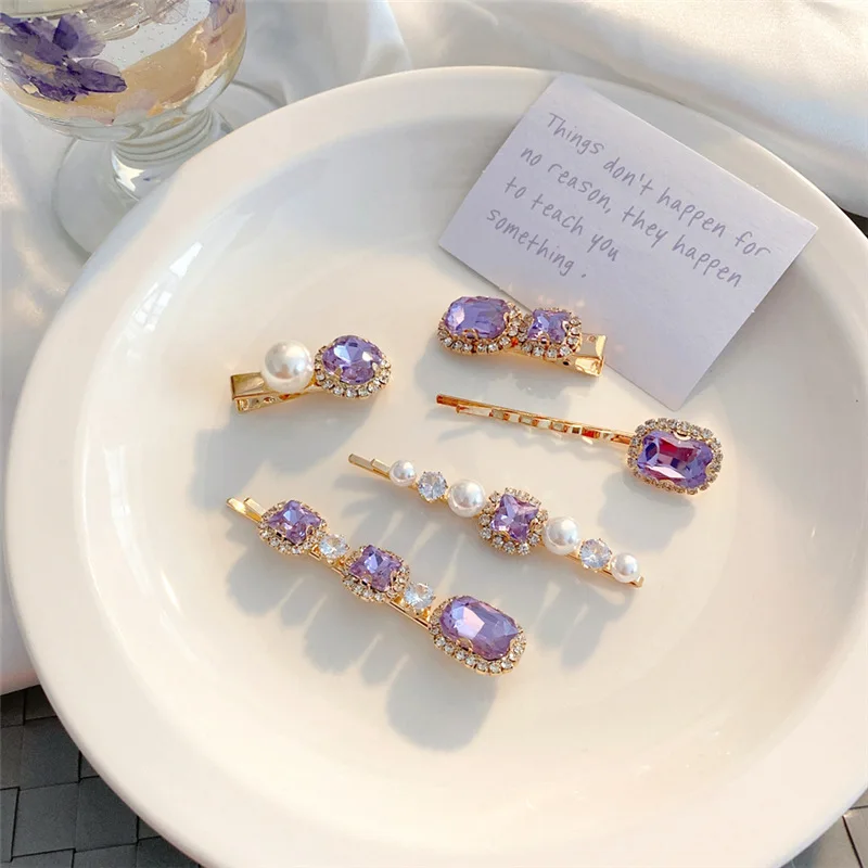 1 компл. Модные заколки для волос с кристаллами ювелирные изделия для женщин аксессуары для волос для девочек Роскошные Жемчужные геометрические заколки Рождественский подарок