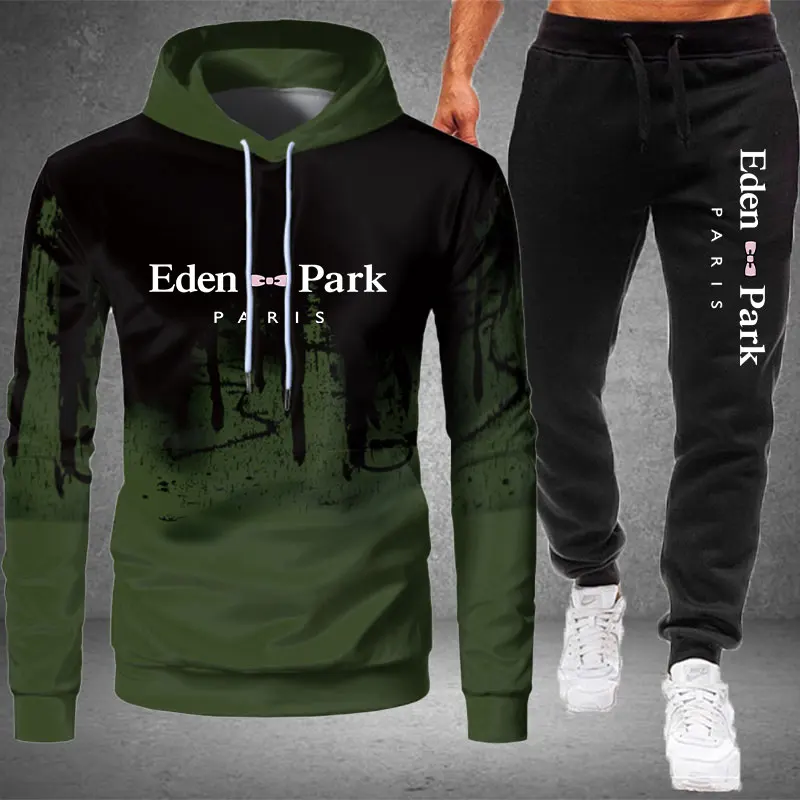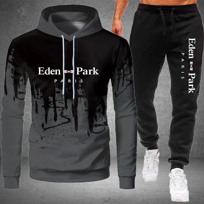 Осенне-зимний новый мужской костюм с капюшоном с принтом, спортивный свитер с завязкой, костюм для бега, брюки с длинными рукавами (4 цвета)