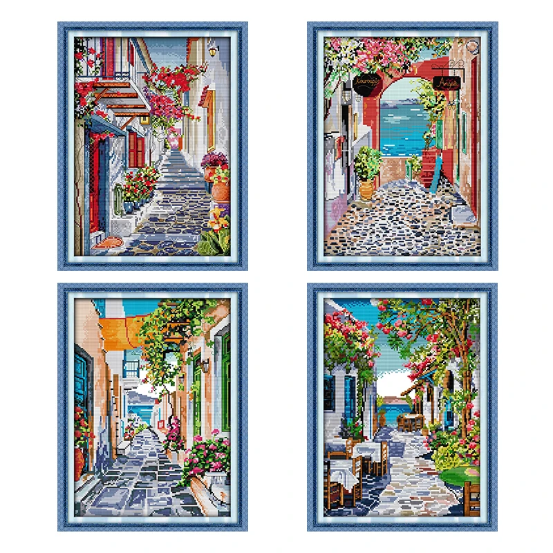 Joy Sunday Набор для вышивки крестиком с цветочным принтом и уличным принтом, 11CT 14CT узоры, штампованные нитки, рукоделие, набор для украшения вышивкиУ нас есть 14CT и 11CT.