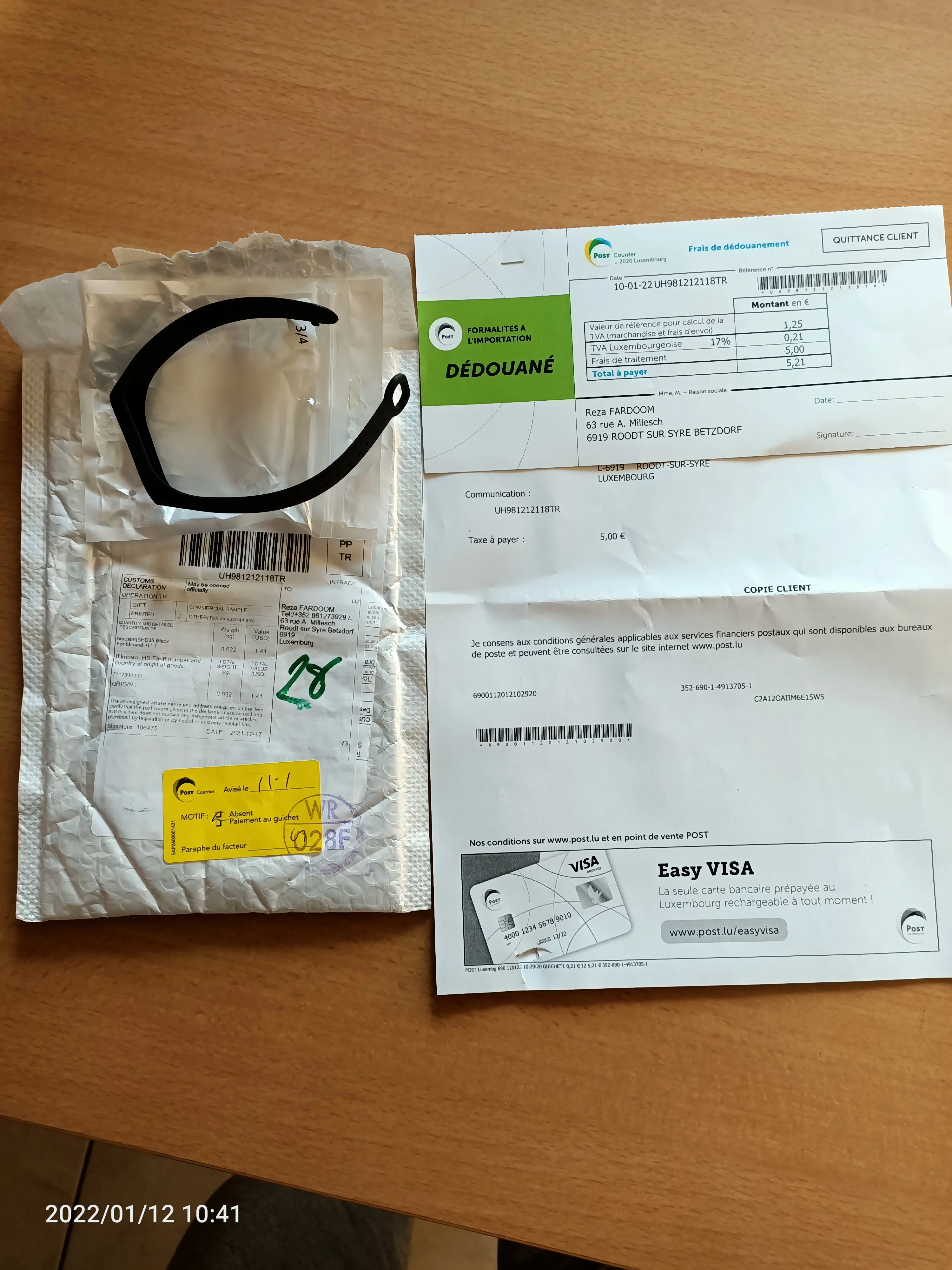Как видно caqn, я должен был заплатить 5 евро плату за управление плюс 0,21 евро налог на импорт по цене 1,25 евро товара. В общей сложности этот товар покрыл мне 1,25 + 5,21 евро налог = 6,46 евро Я не был в курсе этого, когда заказал его! Очень раздражает!