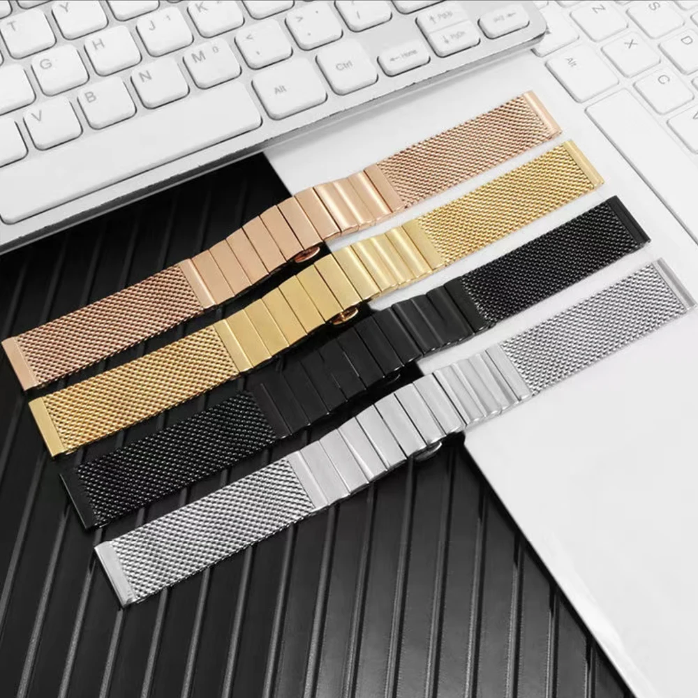 Ремешок для часов из нержавеющей стали, роскошный металлический браслет для наручных часов, сетчатый Браслет Миланская петля сплошного цвета, 18 мм 20 мм 22 мм 24 мм