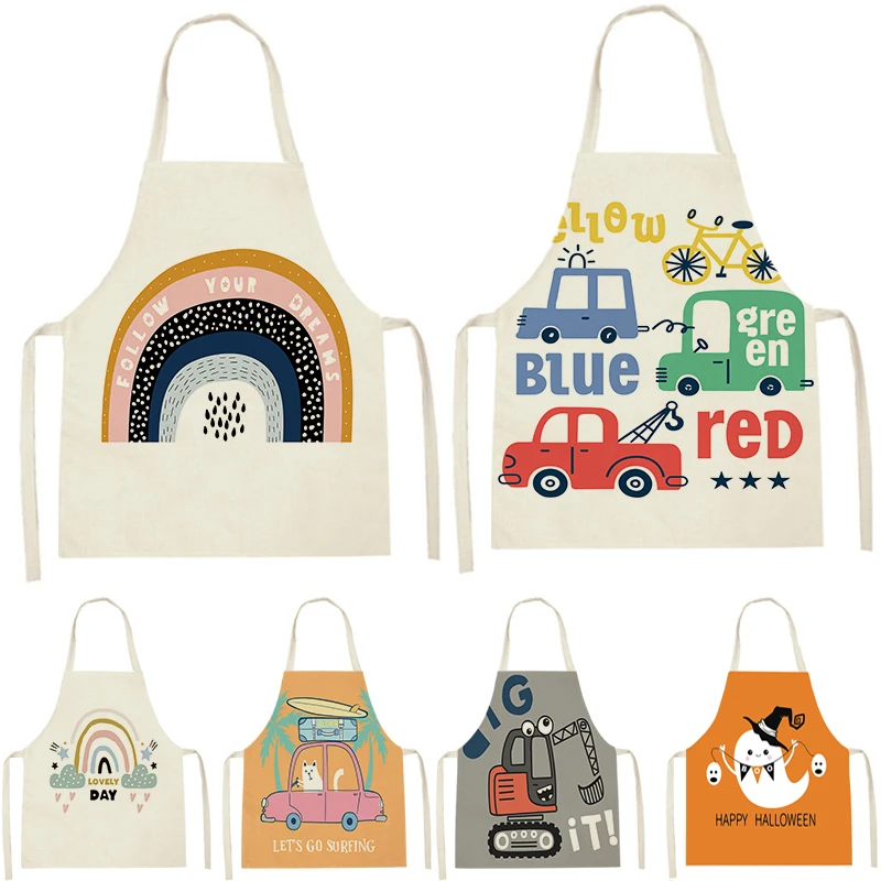 Детский автомобильный фартук с милым мультяшным рисунком, фартук с радужным принтом, фартук для готовки, нагрудник, аксессуары для уборки дома, фартук