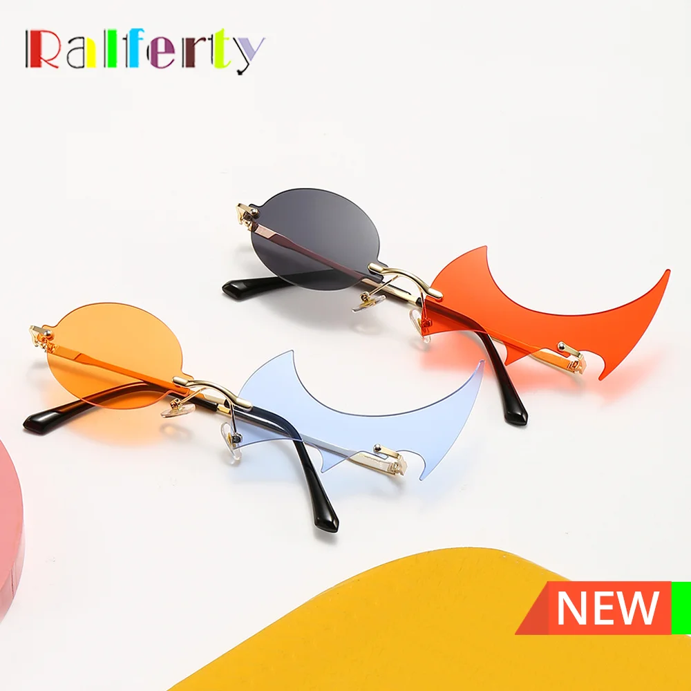 Нестандартные солнцезащитные очки без оправы Ralferty для женщин и мужчин, готические прозрачные солнцезащитные очки для океана UV400, уникальные круглые очки в форме пламени в стиле стимпанк