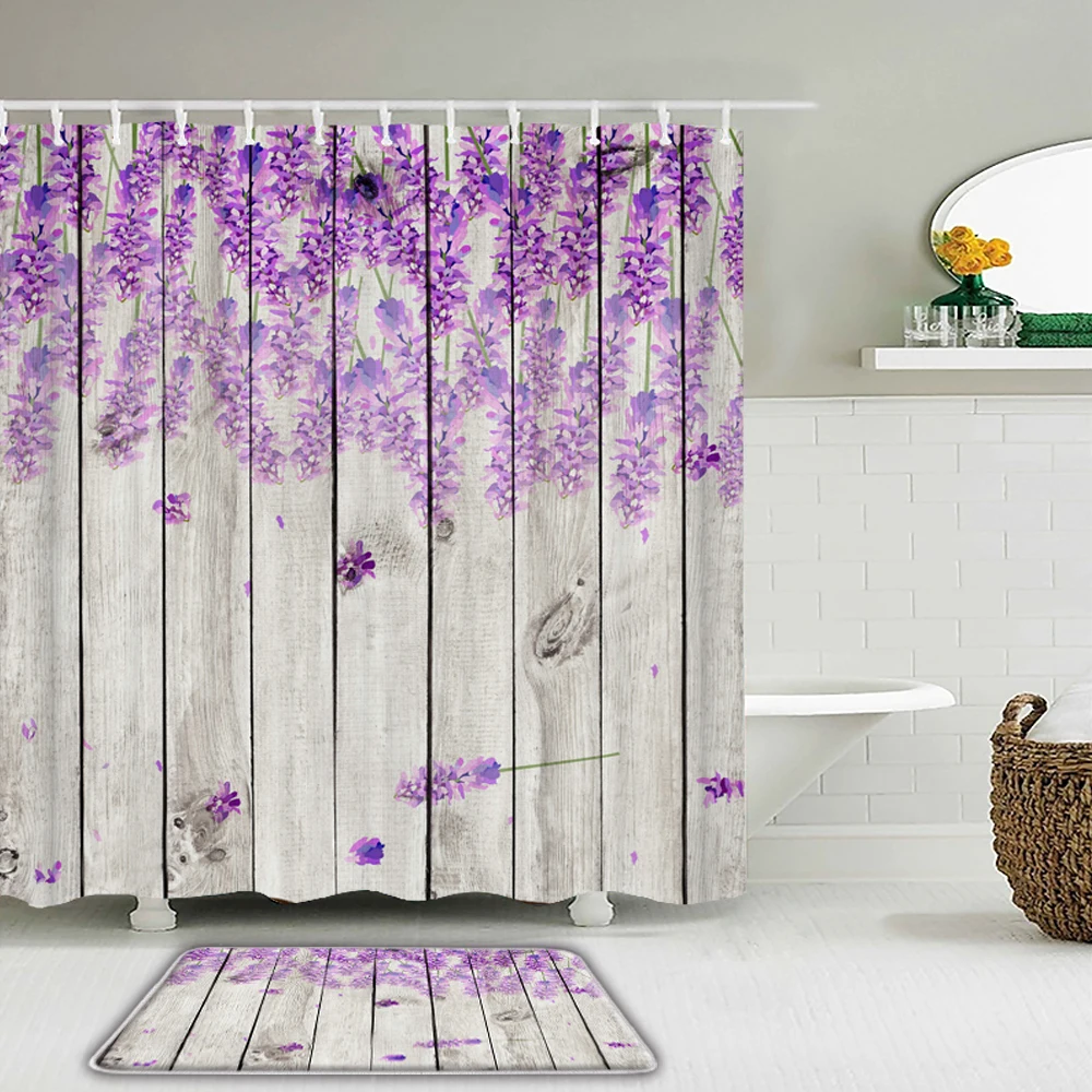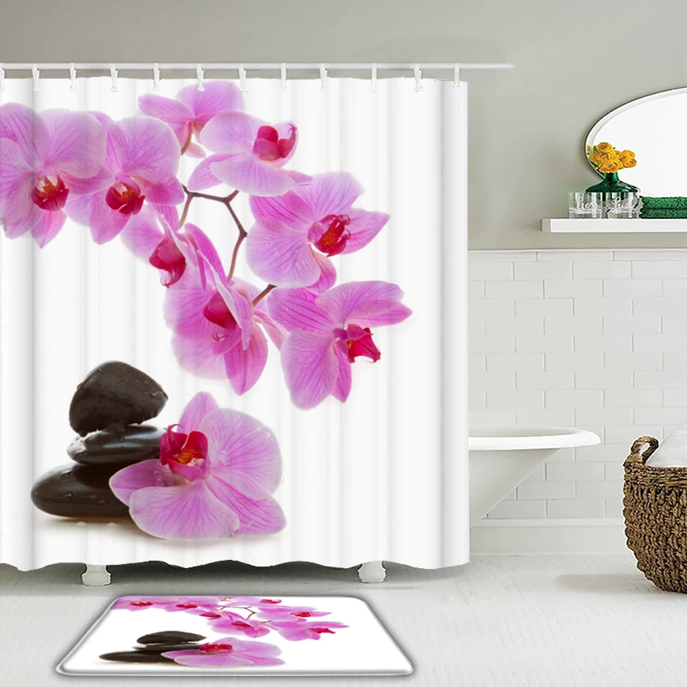 Водонепроницаемая занавеска для душа из полиэстера с 3D цветами