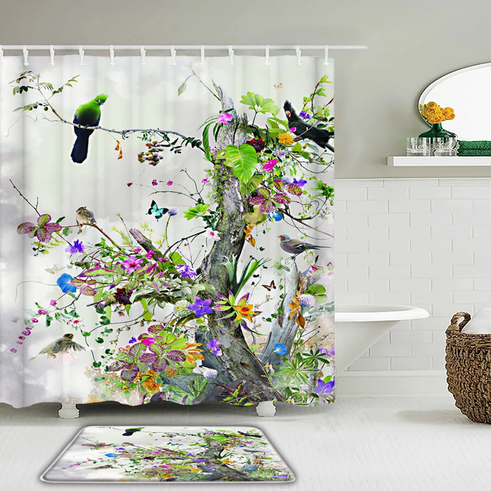 Занавеска для душа с цветами, птицами, бабочками, 3d-занавеска для ...