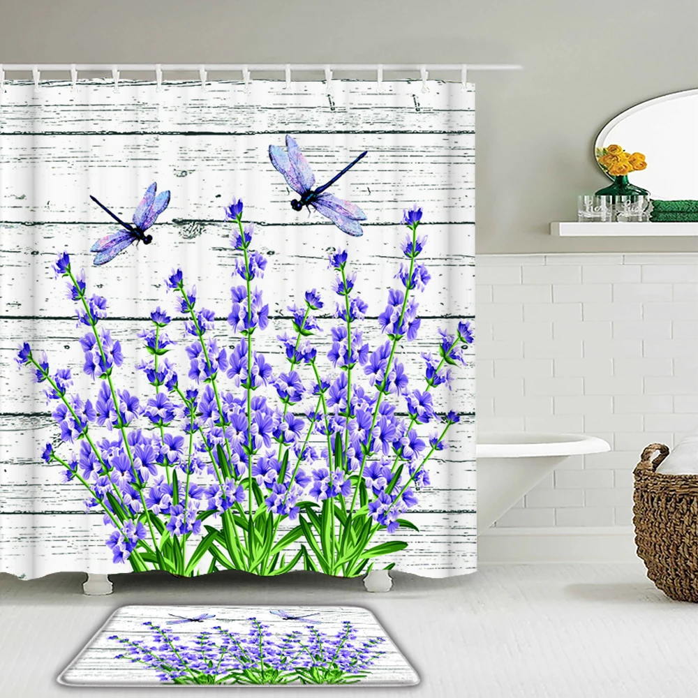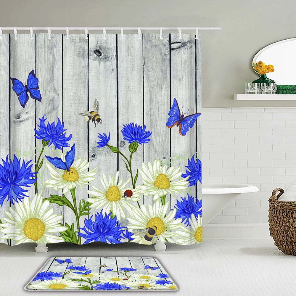 Водонепроницаемая занавеска для душа с изображением цветов и бабочек