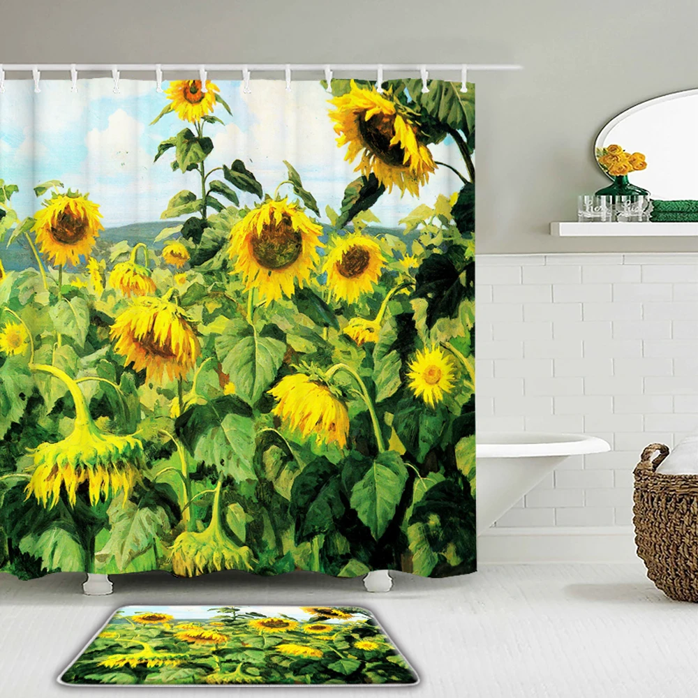Занавеска для душа с красивыми подсолнухами, водонепроницаемая Штор...