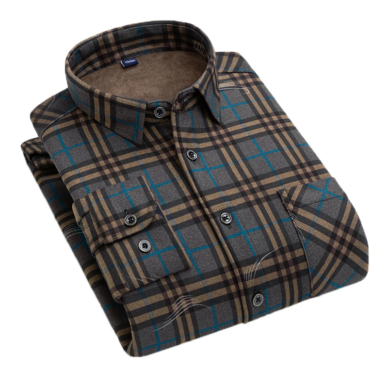 Мужская теплая рубашка AOLIWEN с бархатной подкладкой, с длинным рукавом, в клетку, новинка 2021, повседневная утолщенная зимняя теплая рубашка в клетку с карманами