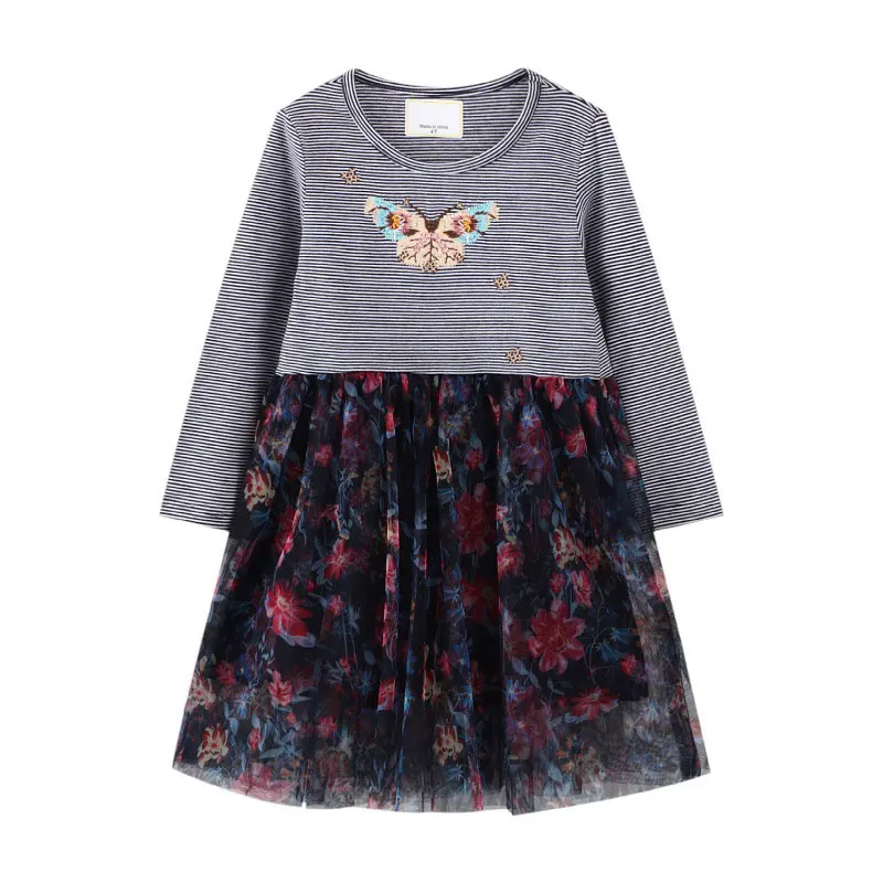 Платье принцессы для маленьких девочек с единорогом, хлопковые сетчатые платья в стиле пэчворк, детские платья, новая детская одежда с бабочками и блестками
