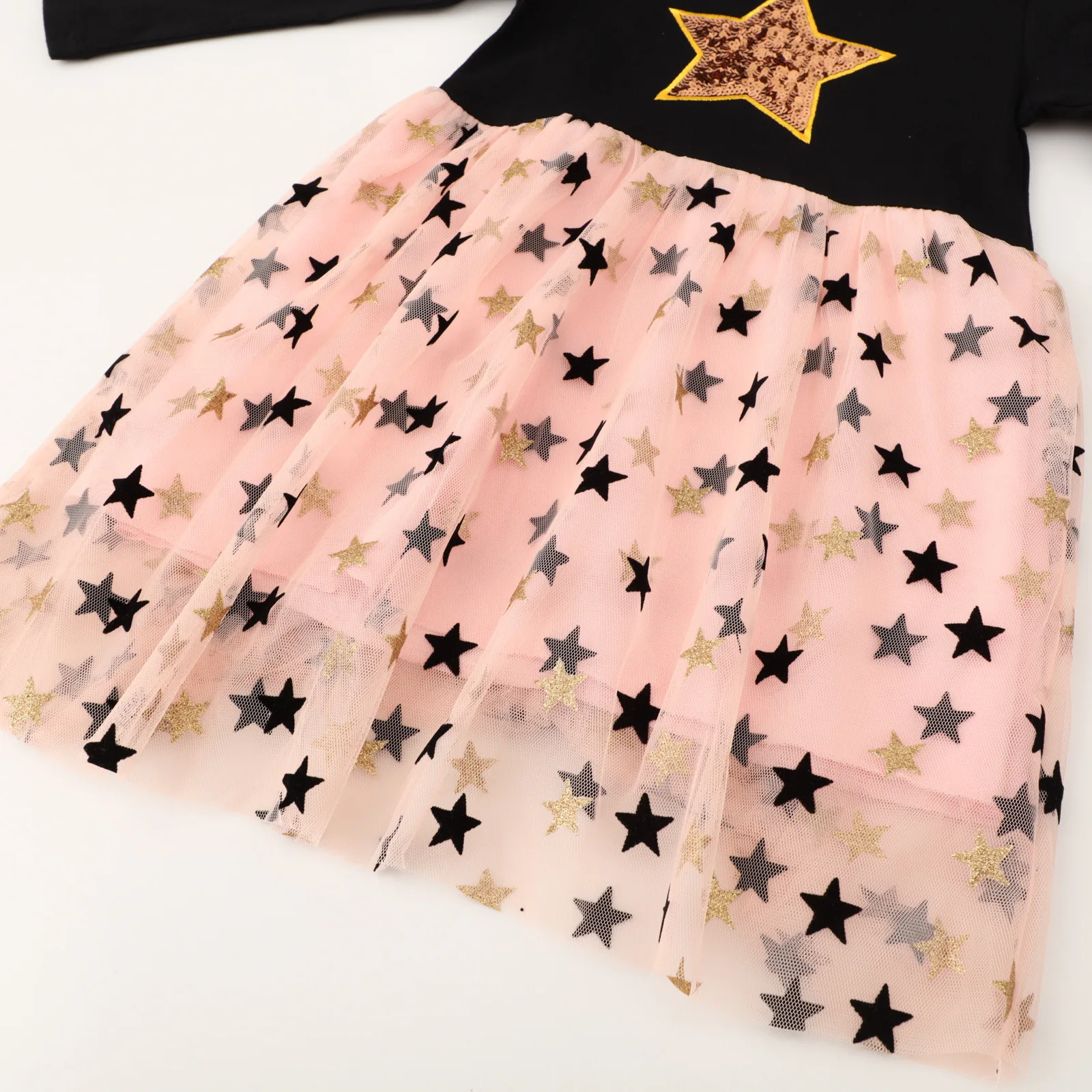 Детское осенне-зимнее платье с блестками и длинными рукавами