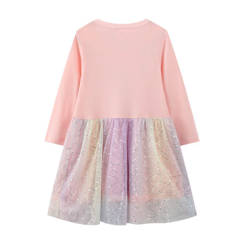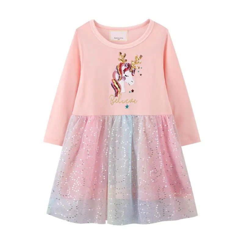 Детское Сетчатое платье-пачка, с длинным рукавом и единорогом