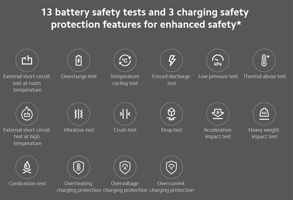 ● 13 тестов безопасности батареи и 3 защита зарядки безопаснее