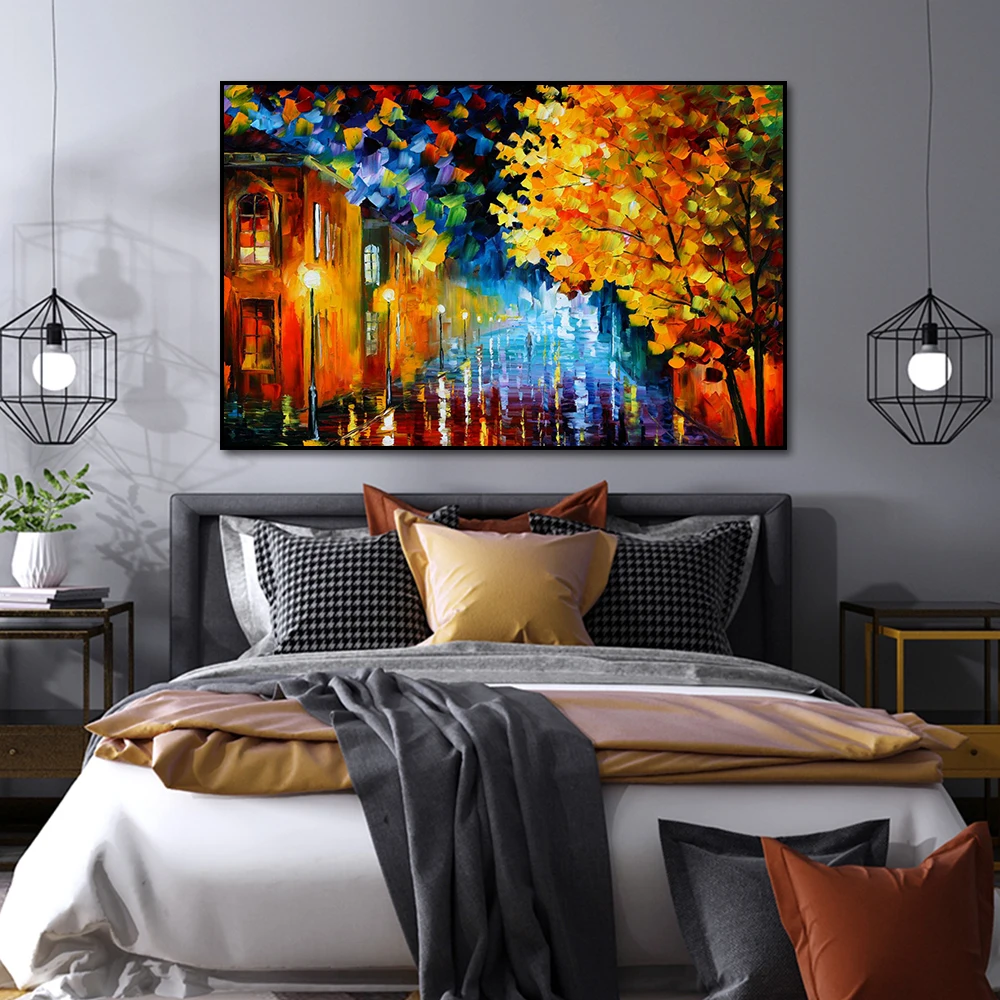 Пейзаж деревни масляная живопись абстрактный дом и дерево искусство холст живопись гостиная коридор офис украшение для дома Фреска