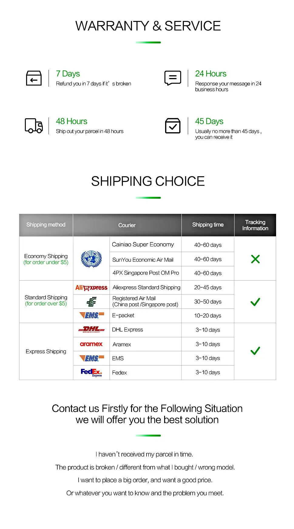 Настоящая Бесплатная доставка viaCainiao Super Economy (не может быть отслежена, но это также быстро для многих стран, Покупатель также может выбрать другой способ доставки)