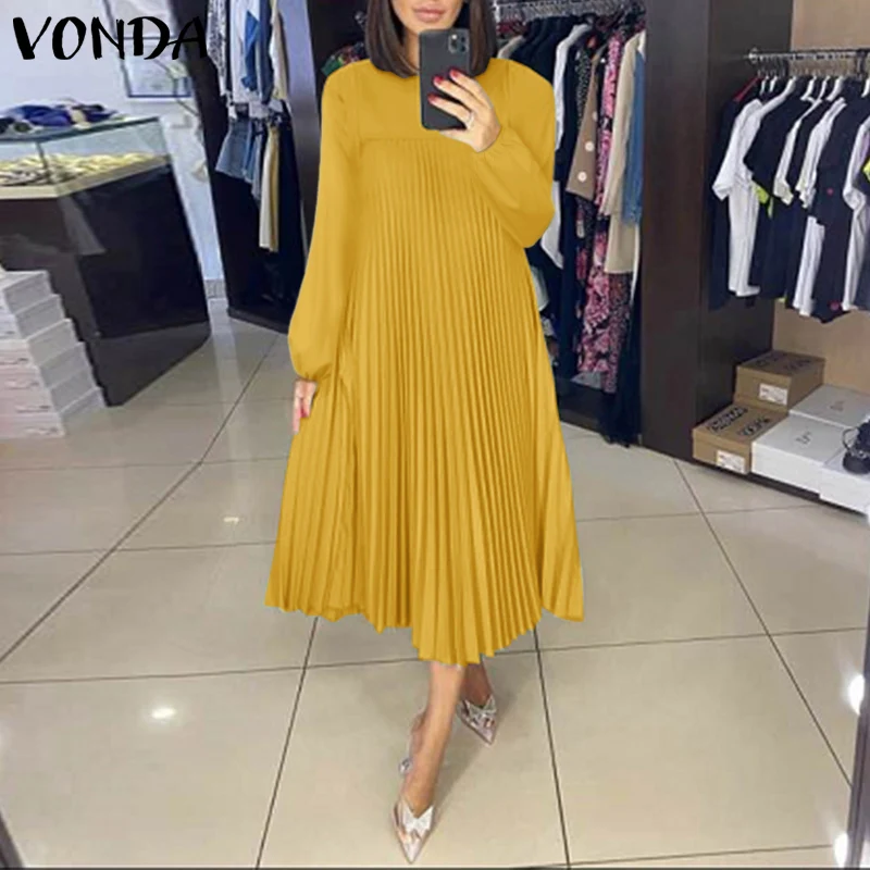 Плиссированное Платье 2022 VONDA, женские осенние однотонные платья...
