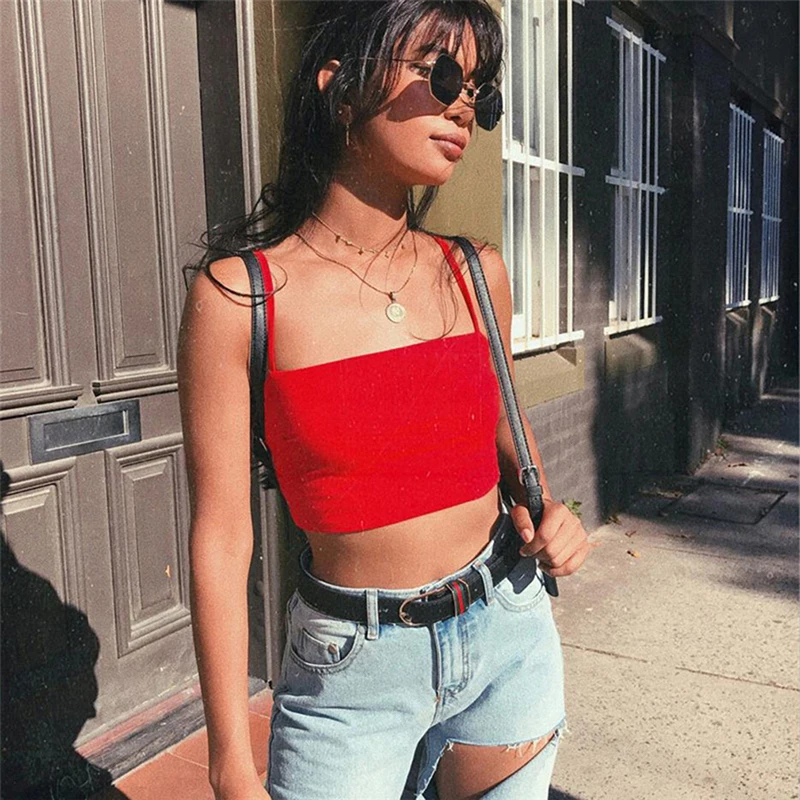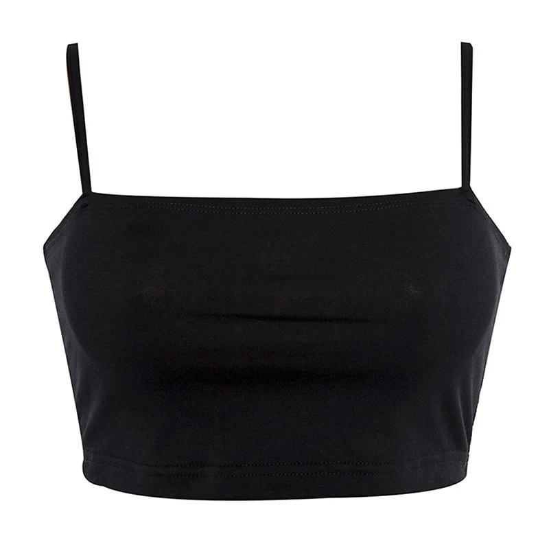 Модные женские Клубные майки, однотонные майки без рукавов на бретельках, укороченный топ без косточек, бюстгальтер, повседневные сексуальные женские летние майки