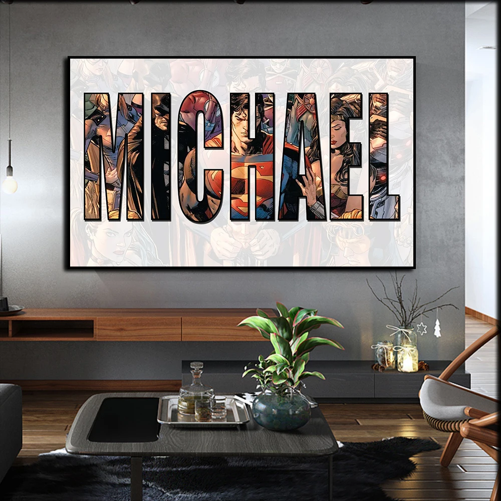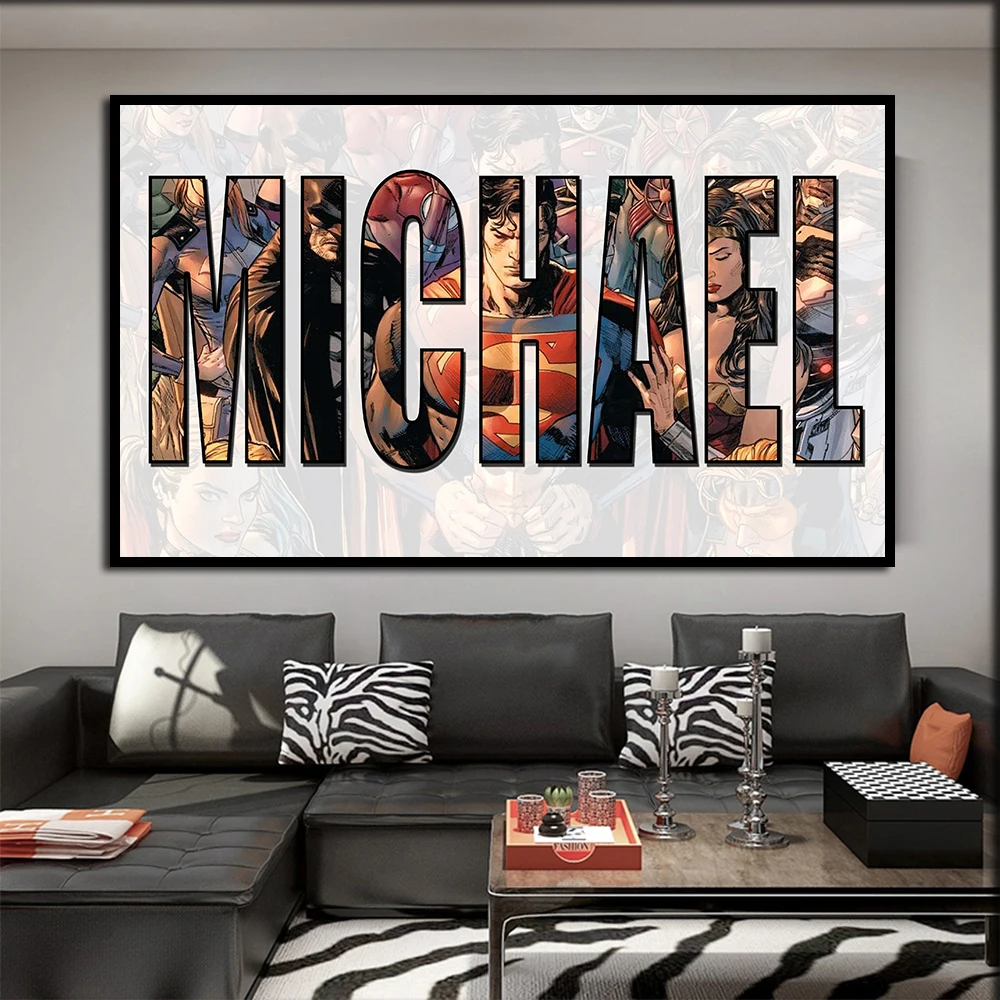 Новая современная картина для гостиной в индивидуальном стиле с названием имени, художественная живопись, мультяшная фигурка, плакат, Картина на холсте, настенный художественный Декор для дома