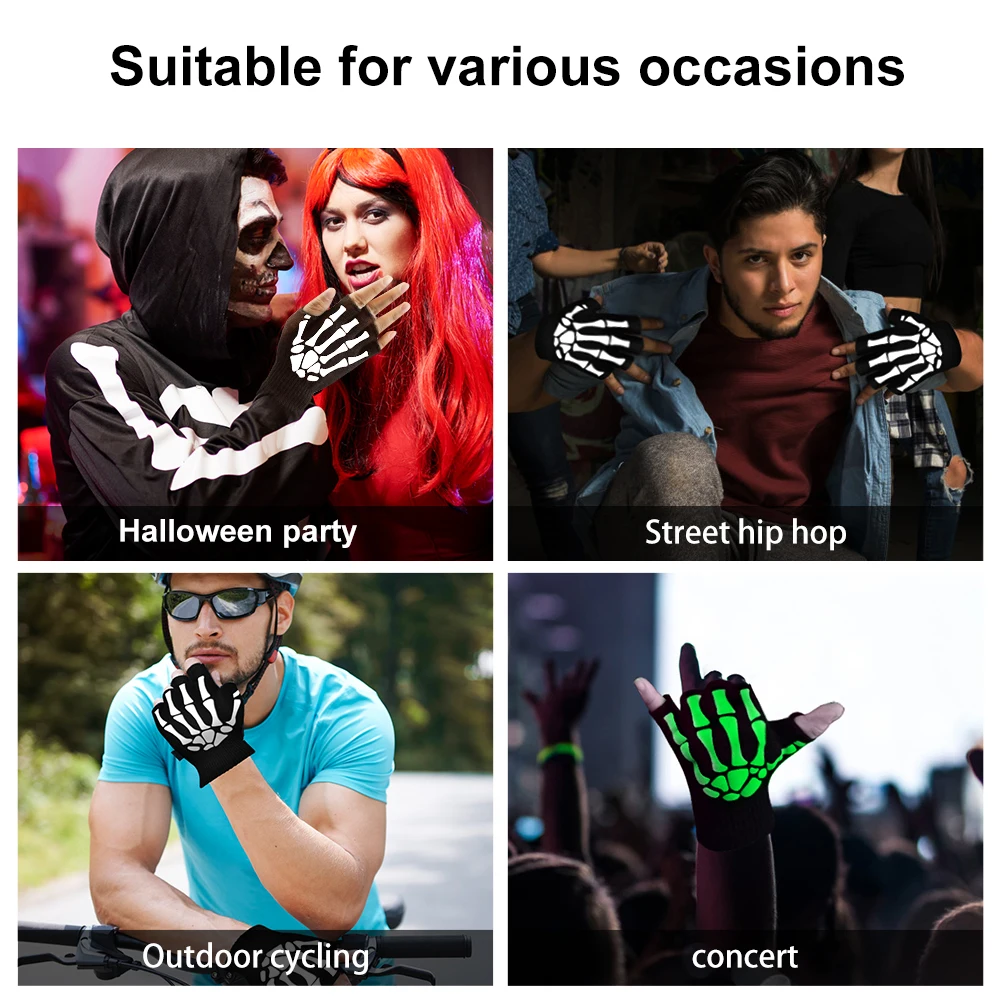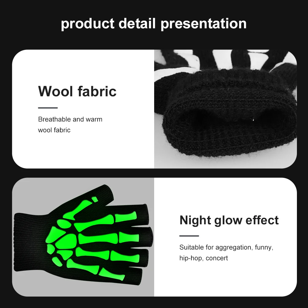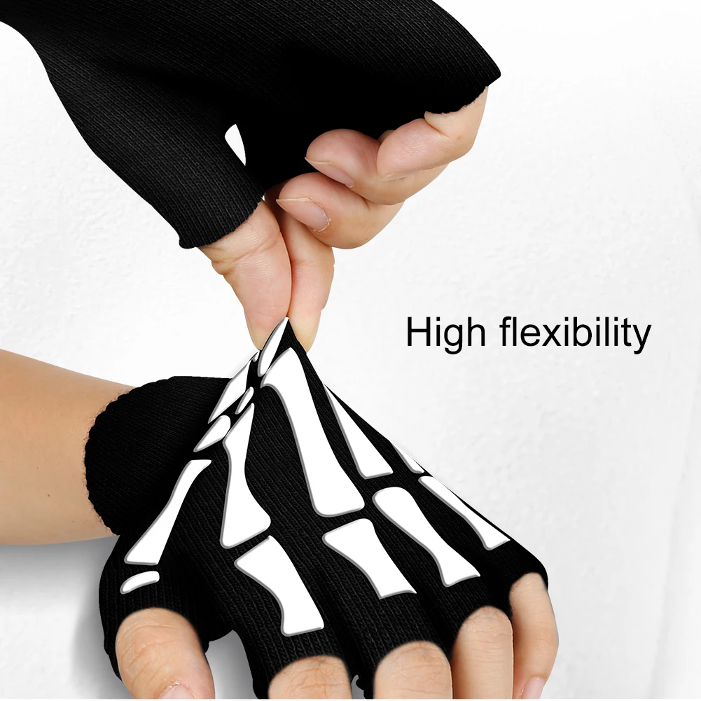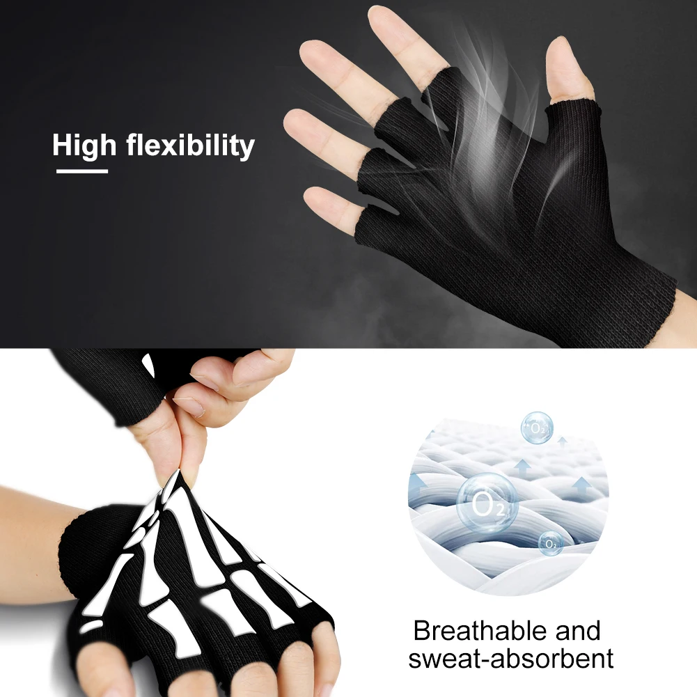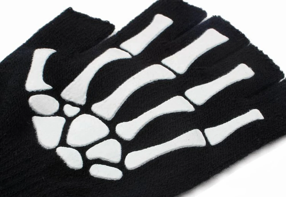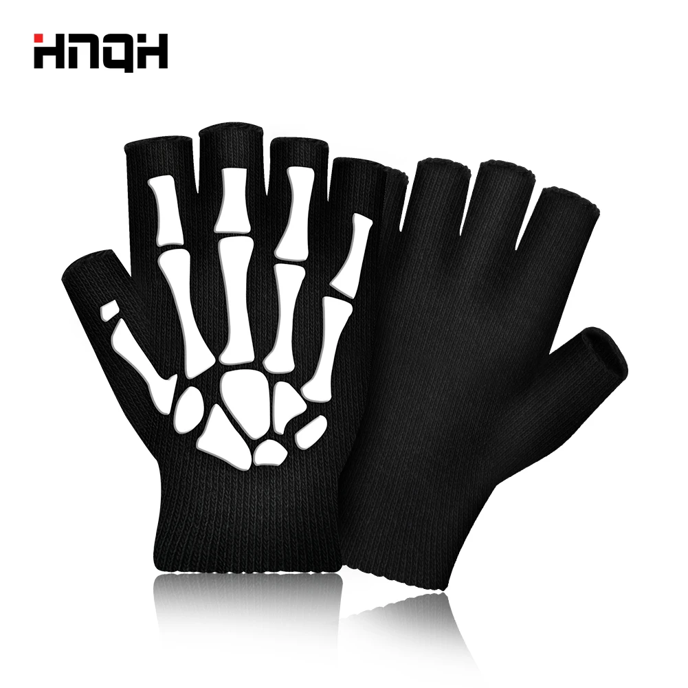 Теплые вязаные перчатки для взрослых, однотонные акриловые перчатки на полпальца, перчатки с защитой головы скелета человека, велосипедные Нескользящие перчатки с принтом