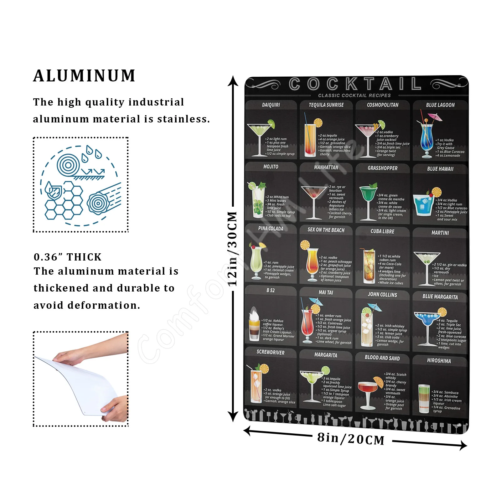 Винтажные классические Коктейльные рецепты оловянные знаки Ретро виски Джин Текила металлические знаки для бара ресторана домашнее искусство настенный Декор 12x8 дюймов