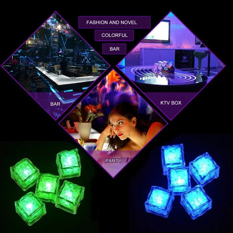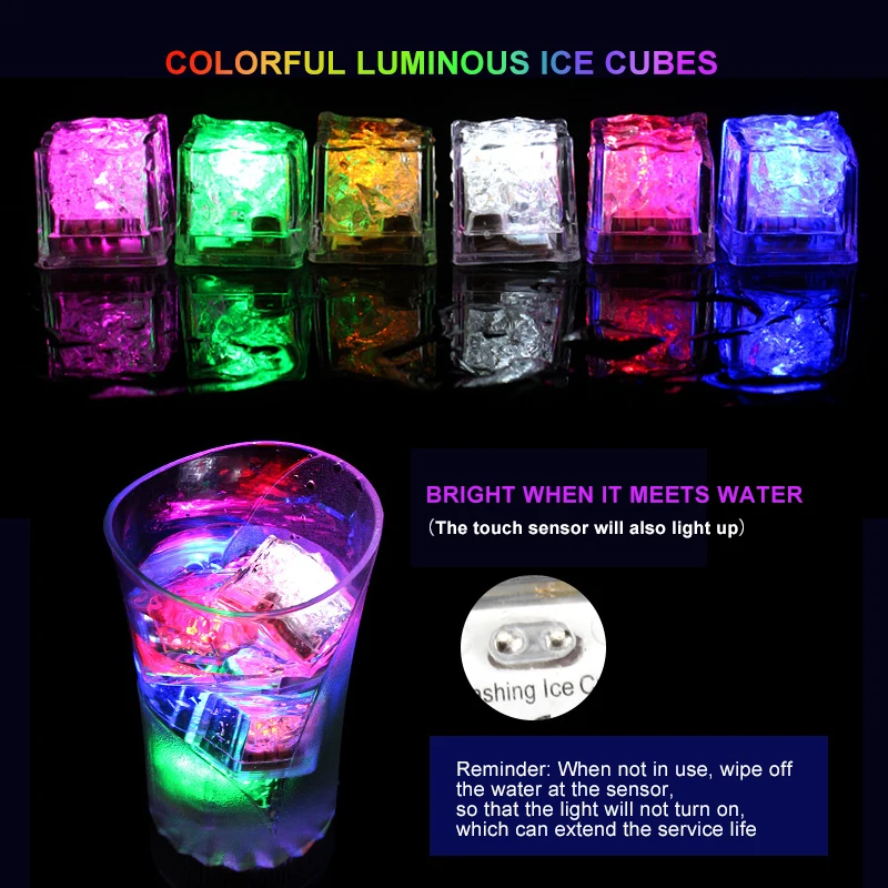 6 шт. светодиодные кубики льда, светящийся вечерние, мигающий свети...