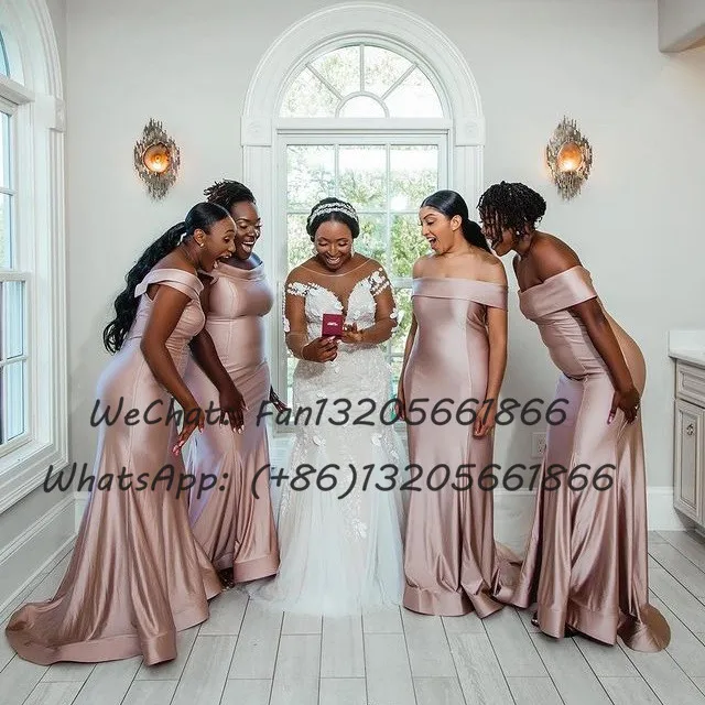 Пыльное розовое платье подружки невесты с юбкой-годе, с открытыми плечами, вырезом лодочкой и открытой спиной, длинное свадебное платье для вечеринки, 2022