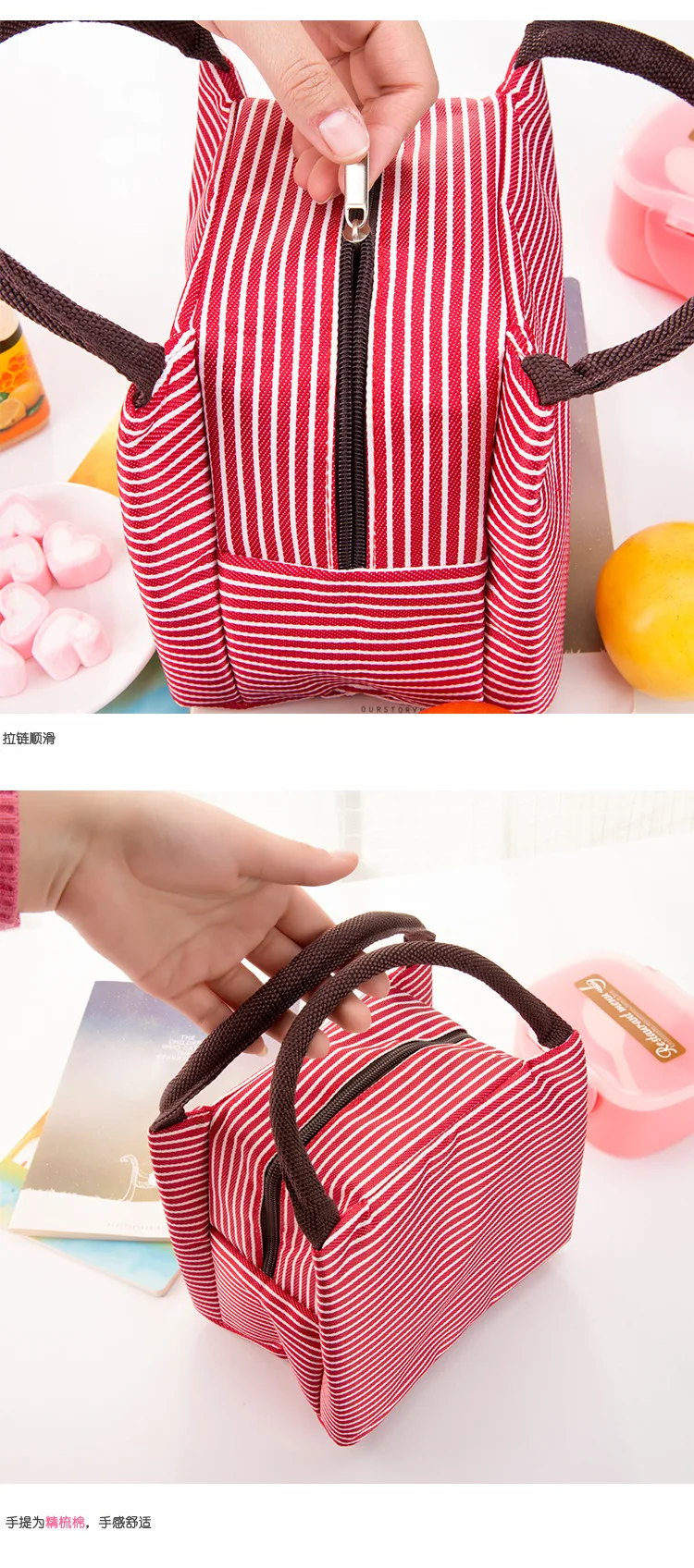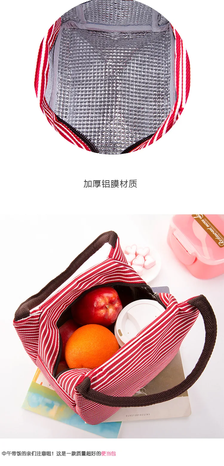 Женский портативный холст для обеденного мешка для отдыха, Изолированные сумки-холодильники в полоску, Термосумки для еды, пикника, обеда, сумки для детей, сумка для обеда