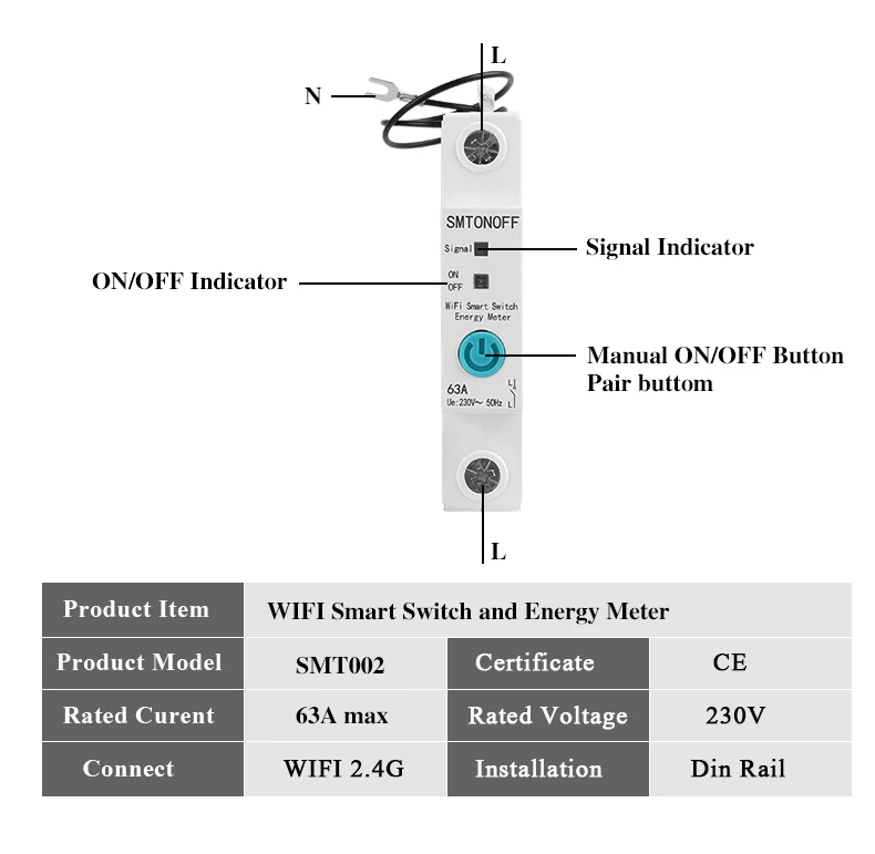 1P Din-рейка, Wi-Fi, быстрое энергопотребление, измеритель мощности...