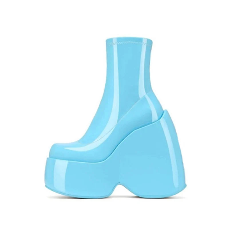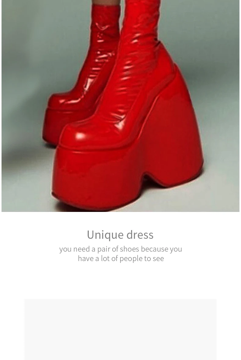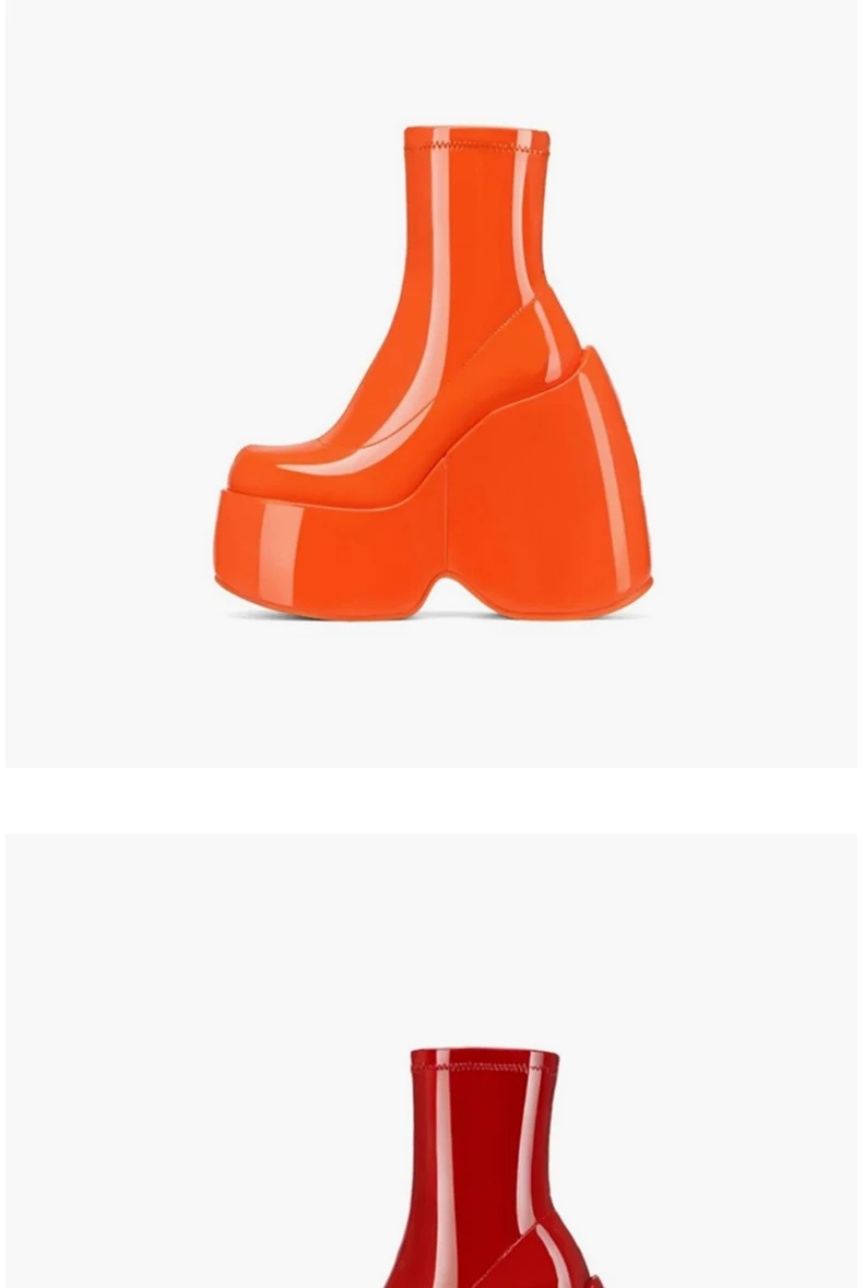 Новинка Осень-зима 2022, модные привлекательные лакированные ботинки мартинсы карамельных цветов, женская обувь на платформе и толстом высоком каблуке, красные ботинки на танкетке, большой размер